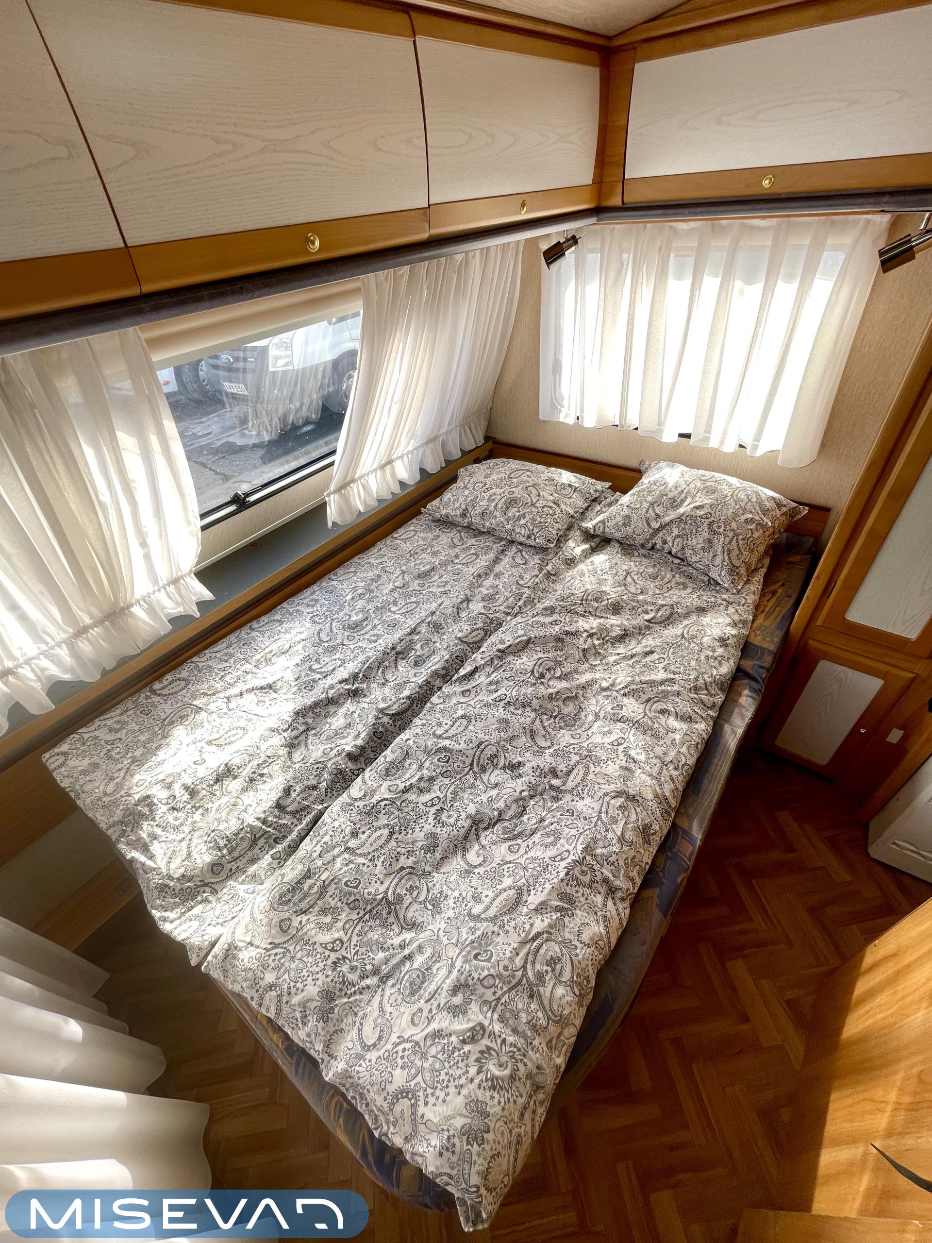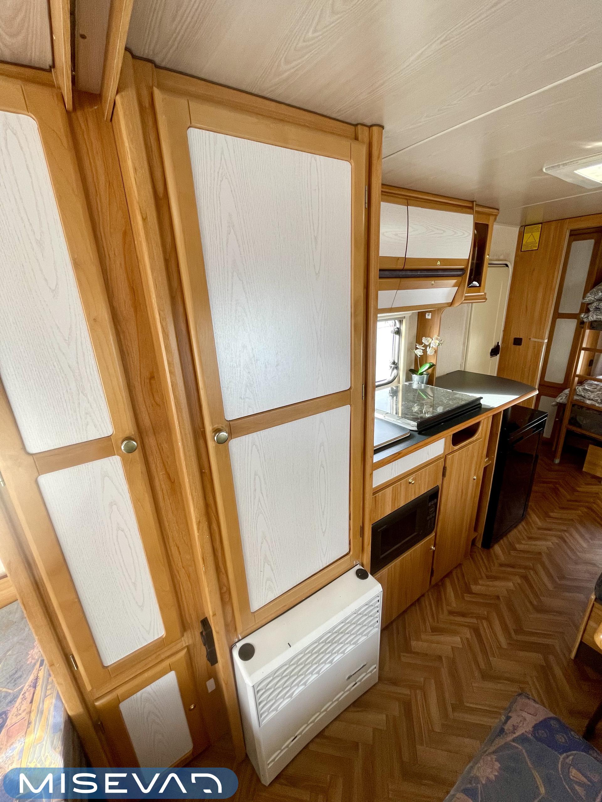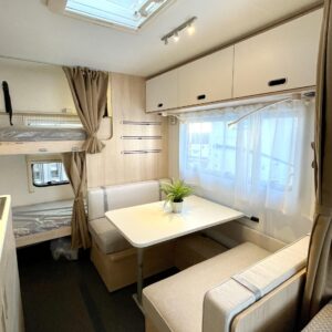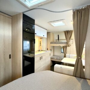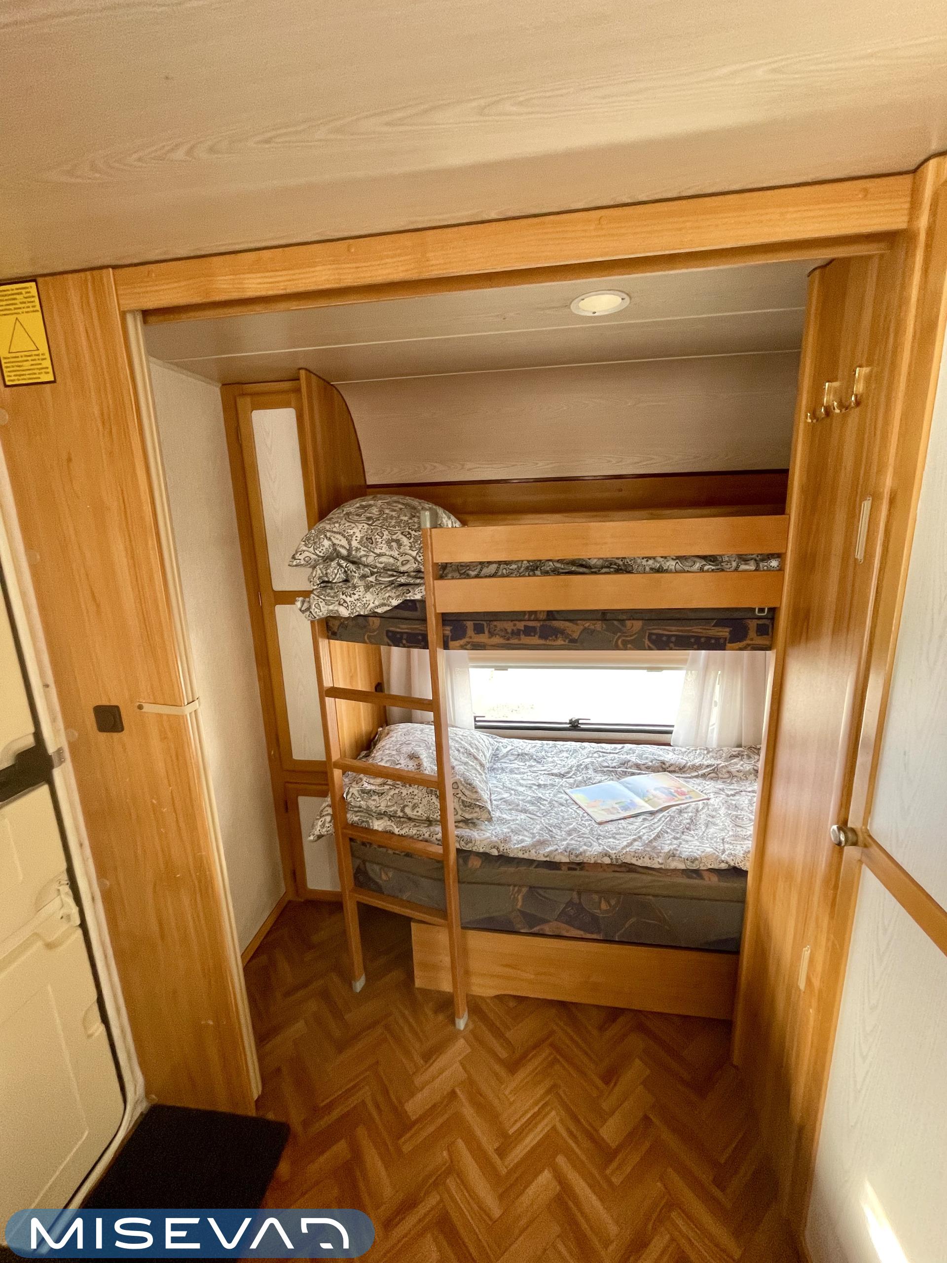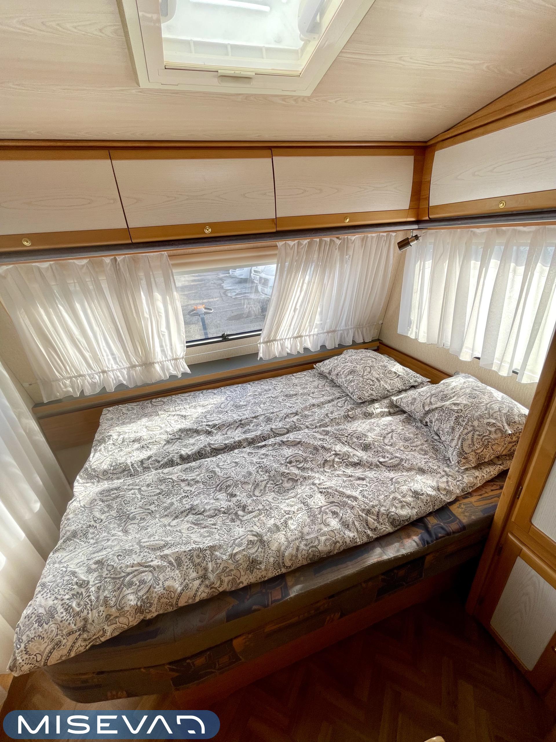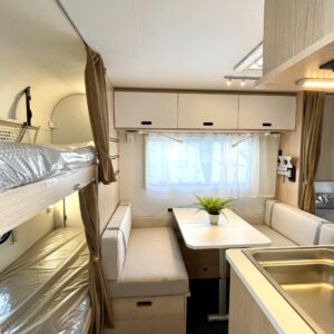 Pluspaketti Aviva (Ultraheat, TrumaVent, Yläoven hyönteisverkko, Tv-teline, Toilettilaukku), Korkeajääkaappi, Microwave oven, Fridge, Cassette WC, Cassette blinds, Roof hatch, Bunk bed, Stove, Hot water boiler, Freezer compartment, Double bed, Sink, Shower, Electric heating cartridge, Support legs, Floor heating