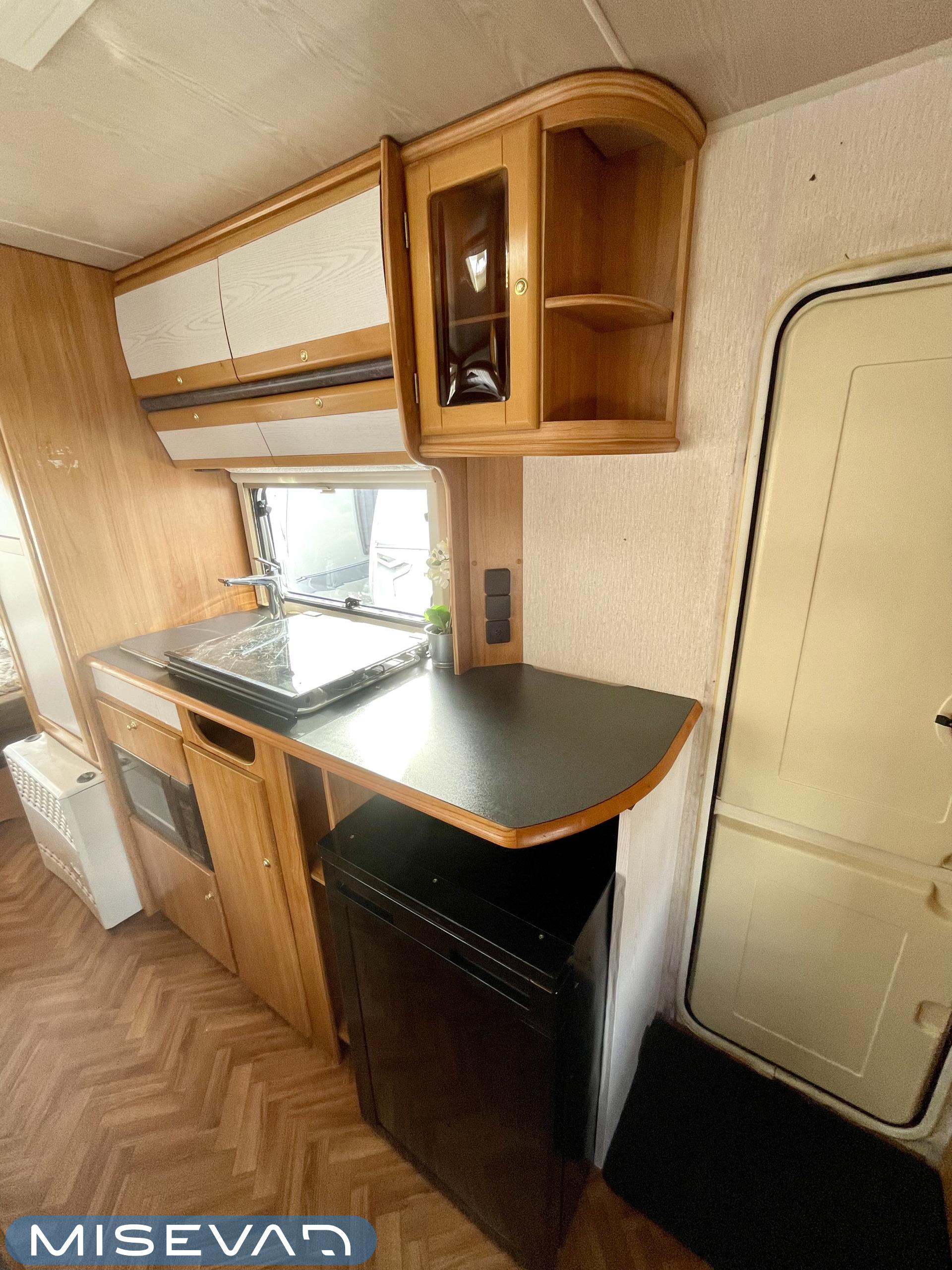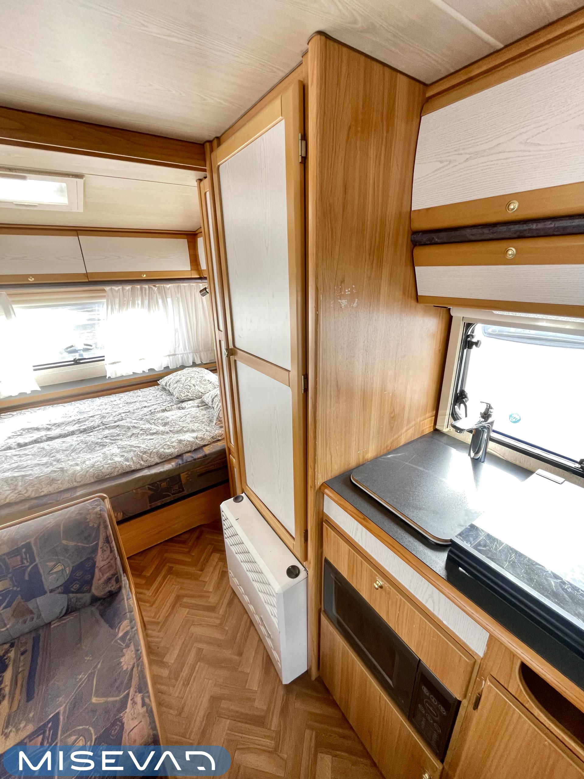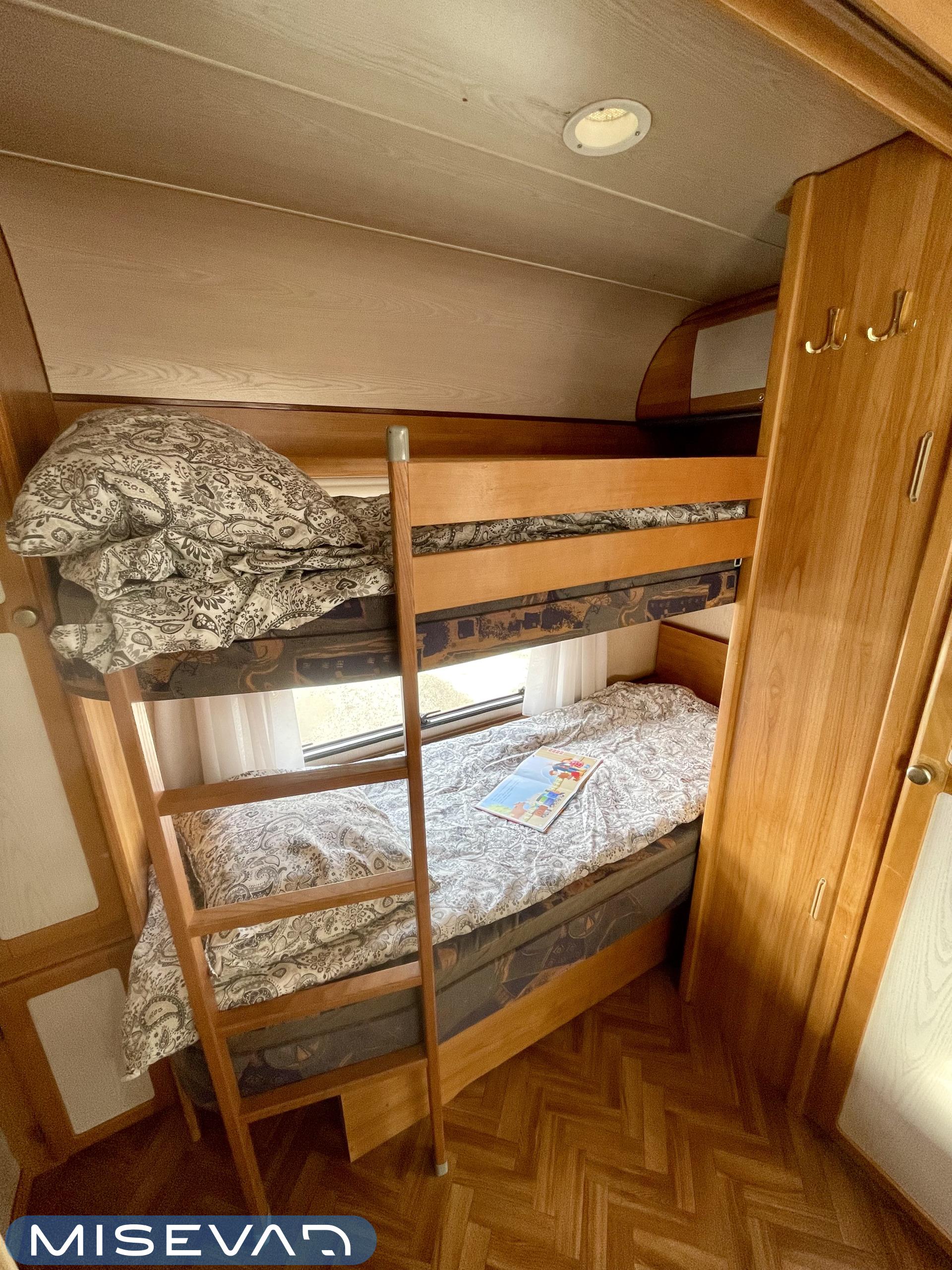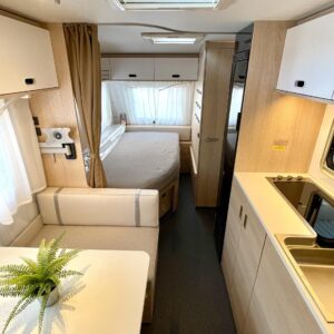 Pluspaketti Aviva (Ultraheat, TrumaVent, Yläoven hyönteisverkko, Tv-teline, Toilettilaukku), Korkeajääkaappi, Microwave oven, Fridge, Cassette WC, Cassette blinds, Roof hatch, Bunk bed, Stove, Hot water boiler, Freezer compartment, Double bed, Sink, Shower, Electric heating cartridge, Support legs, Floor heating