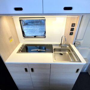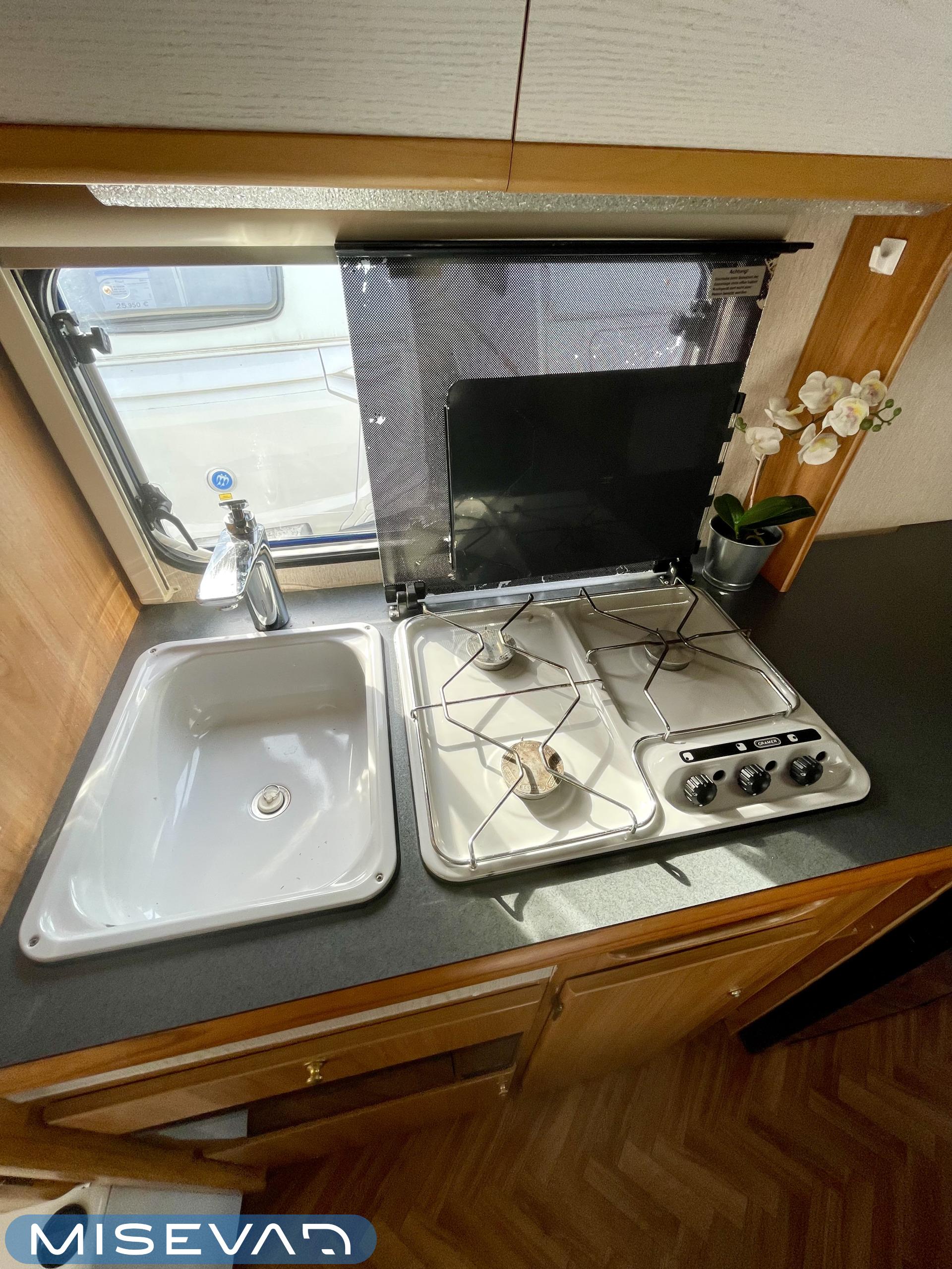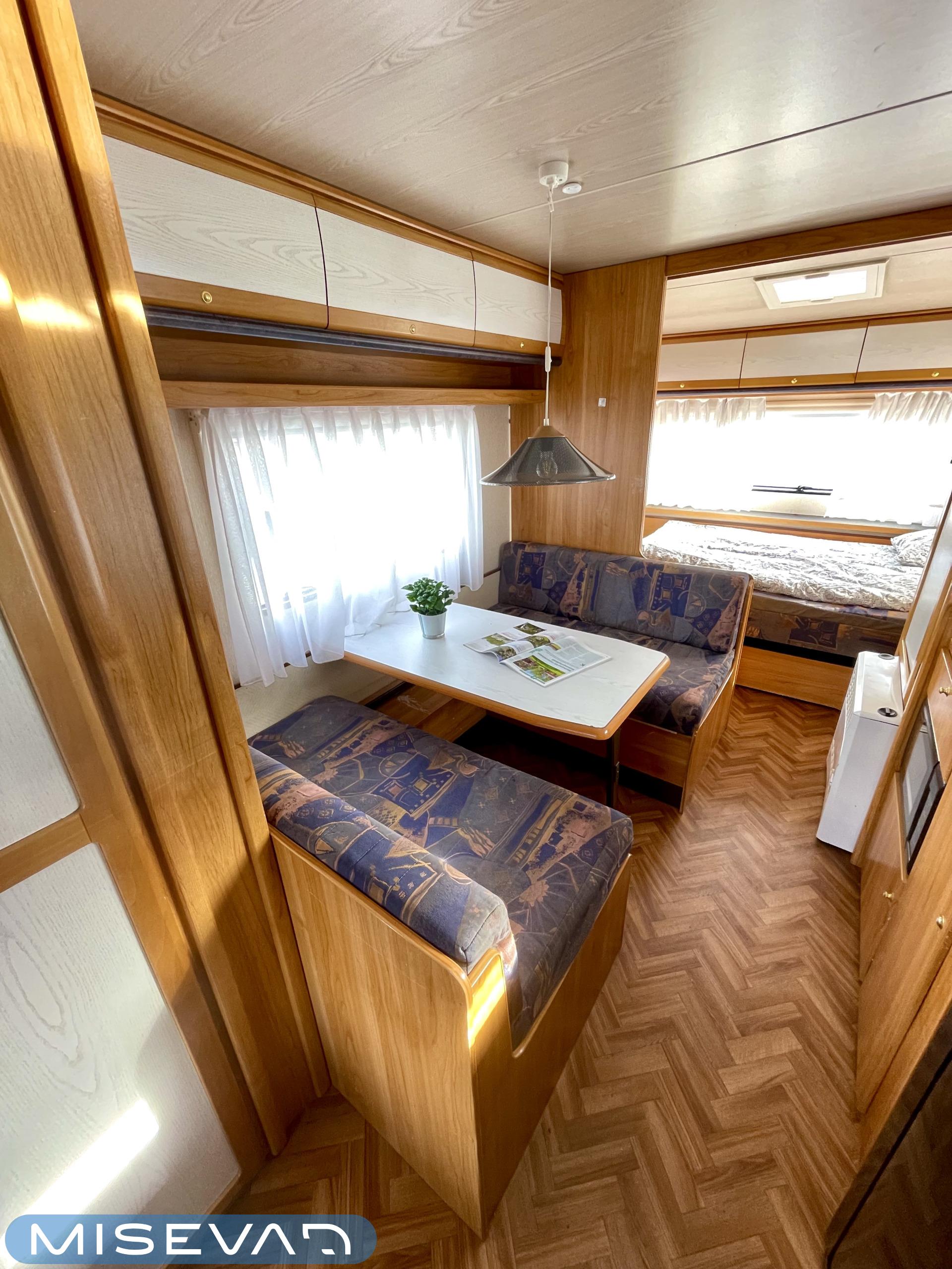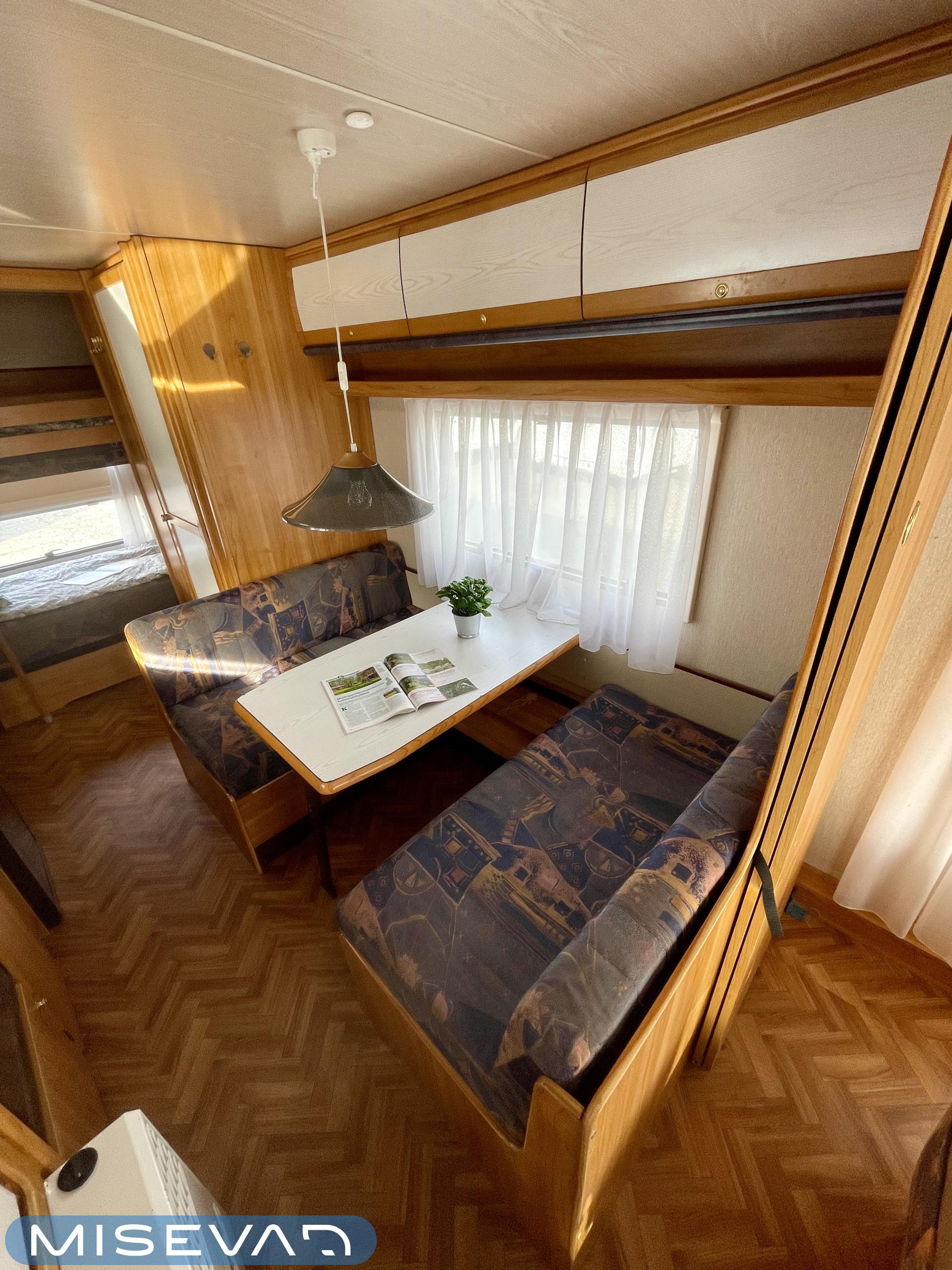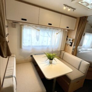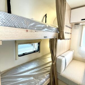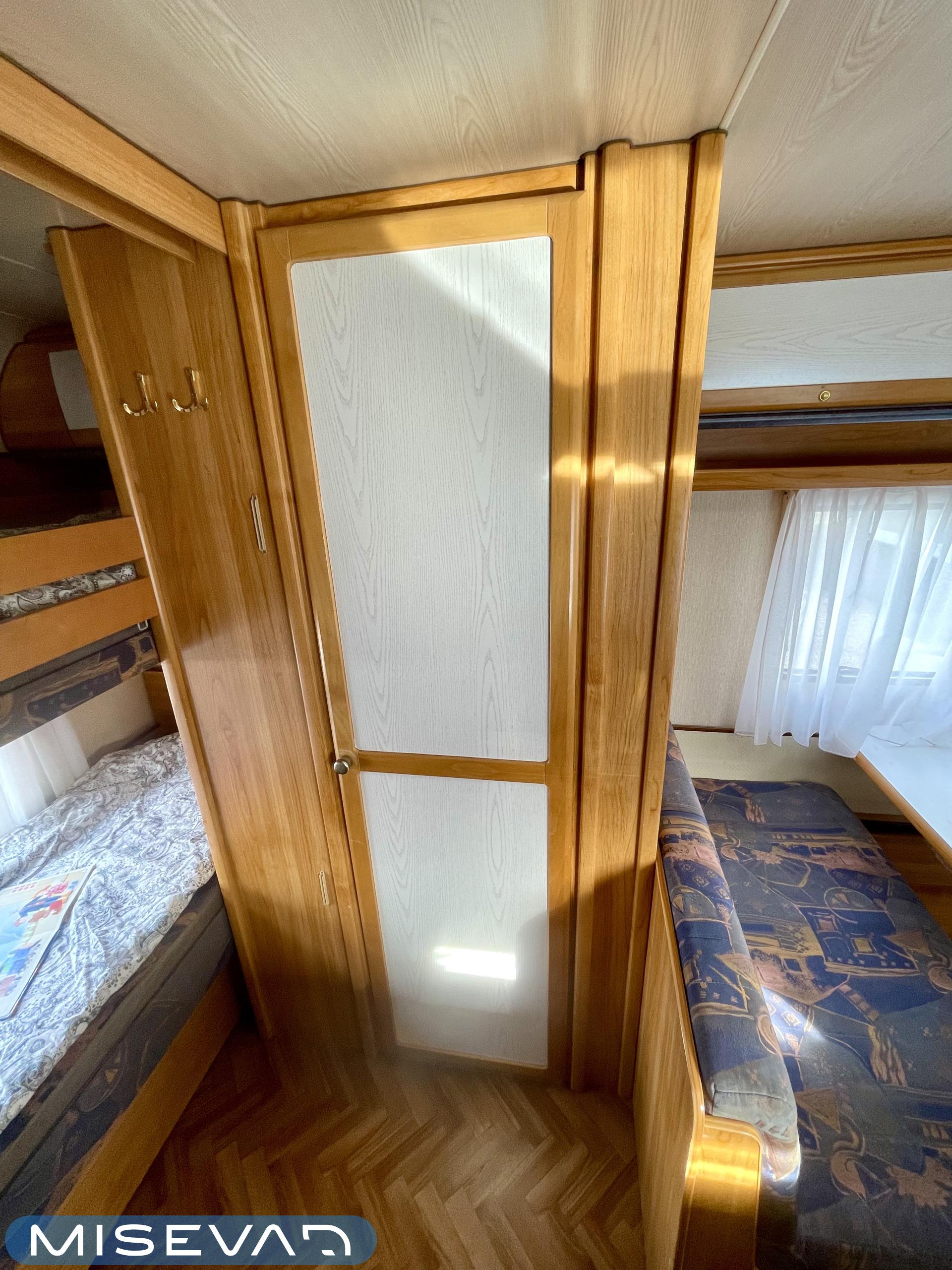 Pluspaketti Aviva (Ultraheat, TrumaVent, Yläoven hyönteisverkko, Tv-teline, Toilettilaukku), Korkeajääkaappi, Microwave oven, Fridge, Cassette WC, Cassette blinds, Roof hatch, Bunk bed, Stove, Hot water boiler, Freezer compartment, Double bed, Sink, Shower, Electric heating cartridge, Support legs, Floor heating