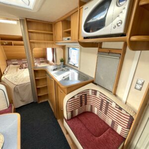Alde, CD-soitin, Special wheels, Fridge, Cassette WC, Cassette blinds, Roof hatch, Bunk bed, Floor heating, Passenger area carpets, Stove, Hot water boiler, Fluid circulation heating, Freezer compartment, Double bed, Sink, Electric heating cartridge, TV-antenni tai lautasantenni, Support legs, Lattialämmitys (sähkö), Asuinosan hyttysovi/verho