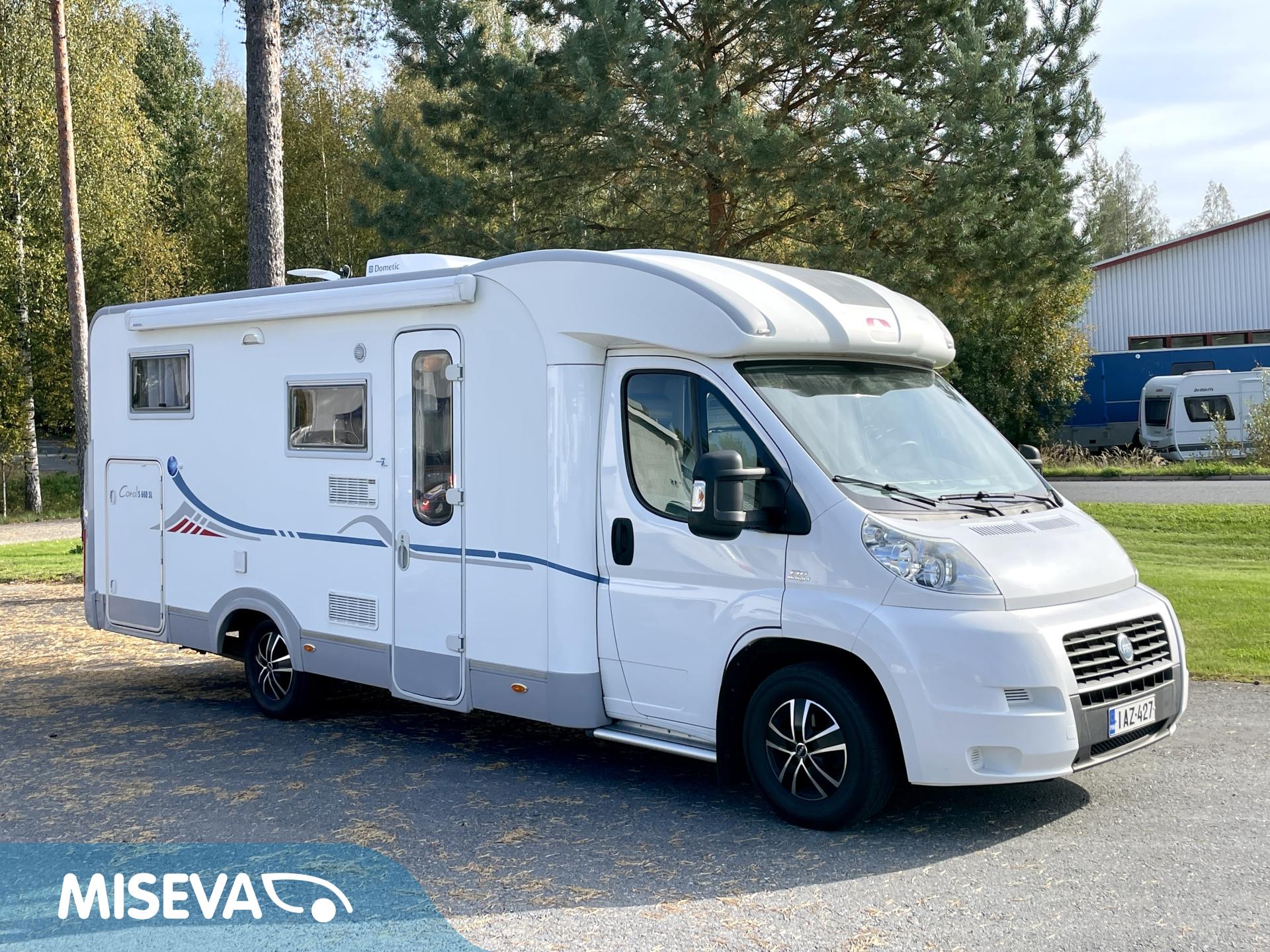 Ilmastointi: Manuaalinen, Cab air conditioning, Gas oven, Cassette WC, Cassette blinds, Roof hatch, Keskuslukitus: Kaukosäätöinen, Central heating, Ignition interlock, Floor heating, Power steering, Freezer compartment, Stove, Hot water boiler, Sink, Sun shade, Trumatic, Electric heating cartridge, Vakionopeudensäädin, Turbo, Passenger area carpets, Bicycle rack, Towing hook, Power side mirrors, Pysäköintikamera, ABS brakes, Airbag, Trip computer, CD-soitin, Separate beds, Fridge, Electric windows, Shower, Radio, Support legs, TV-antenni tai lautasantenni