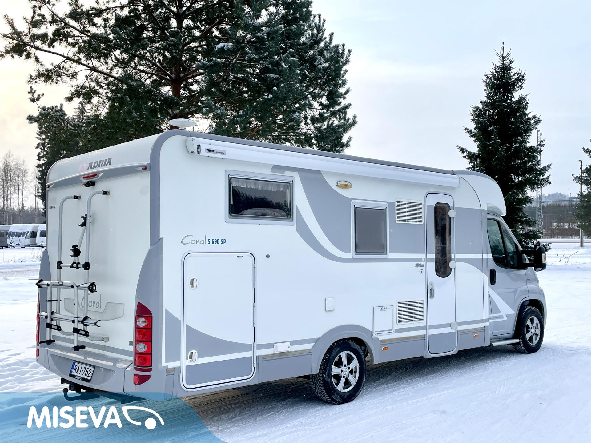 ABS brakes, Airbag, Trip computer, Special wheels, Cab air conditioning, Fridge, Gas oven, Two tyre sets, Cassette WC, Cassette blinds, Roof hatch, Keskuslukitus: Kaukosäätöinen, Central heating, Stove, Engine heater, Hot water boiler, Sun shade, Power steering, Freezer compartment, Double bed, Sink, Pysäköintikamera, Bicycle rack, Radio, Shower, Electric heating cartridge, Trumatic, Turbo, Vakionopeudensäädin, Polkupyöräteline, kwh-mittari, harmaavesisäiliön lämmitys, kaasun ulosotto, astinlaudat, Towing hook