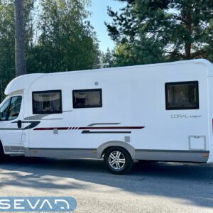 ABS brakes, Airbag, Trip computer, Cab air conditioning, Ilmastointi: Manuaalinen, Special wheels, Roof hatch, Fridge, Keskuslukitus: Kaukosäätöinen, Gas oven, Cassette WC, Cassette blinds, Ignition interlock, Central heating, Hot water boiler, Passenger area carpets, Stove, Power steering, Freezer compartment, Double bed, Sink, Trumatic, Turbo, Vakionopeudensäädin, Bicycle rack, Radio, Shower, Electric windows, Power side mirrors, Engine heater, Floor heating, Sun shade, Pysäköintikamera, Electric heating cartridge, TV-antenni tai lautasantenni