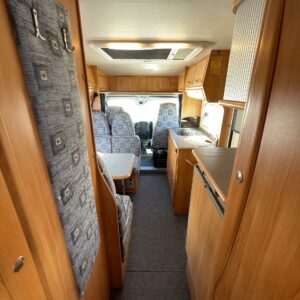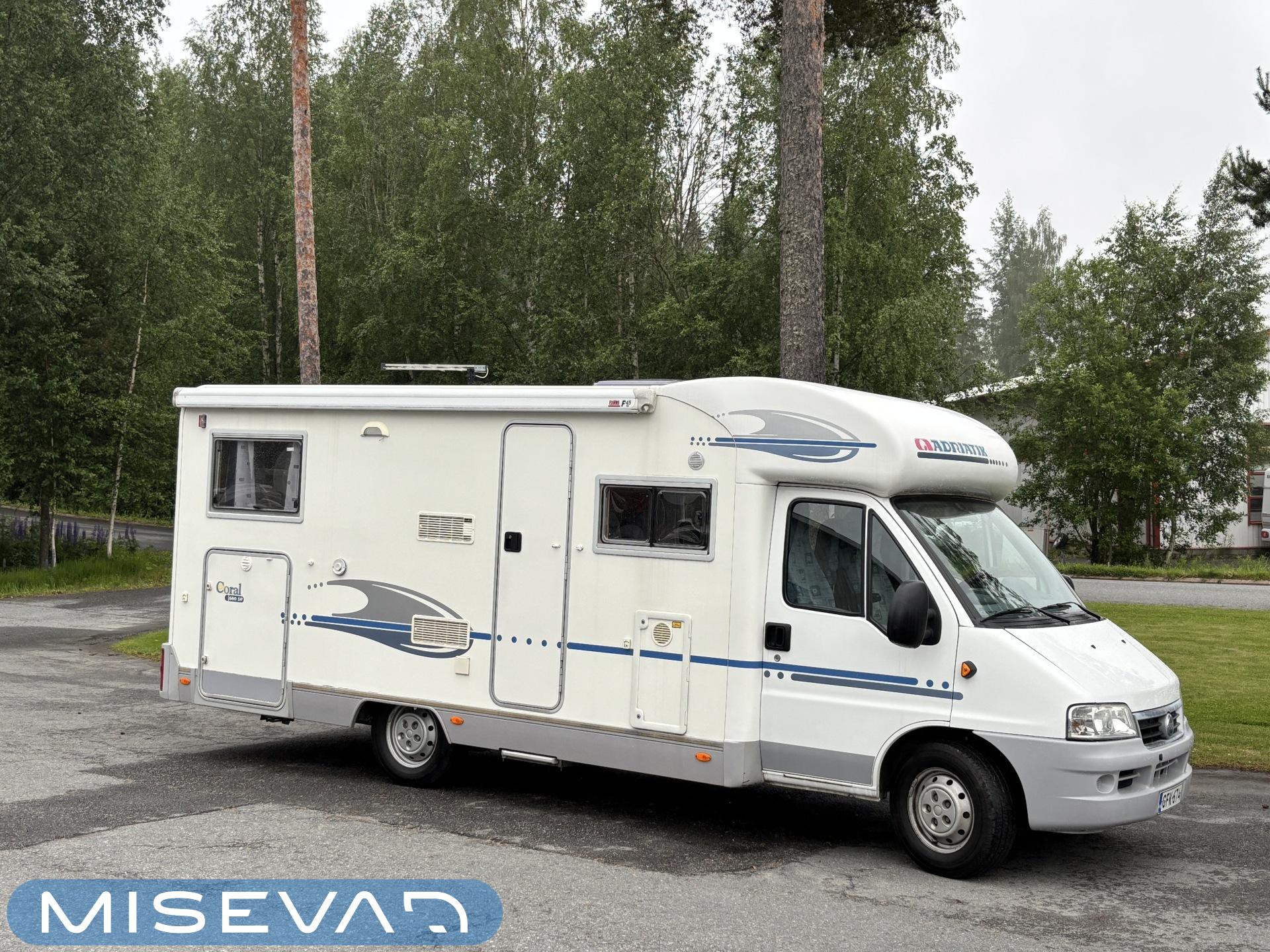 Truma, Fridge, Cassette WC, Cassette blinds, Roof hatch, Floor heating, Stove, Engine heater, Hot water boiler, Sun shade, Power steering, Freezer compartment, Double bed, Sink, Radio, Shower, Electric windows, Power side mirrors, Electric steps, Turbo, Lattialämmitys (sähkö), Ilmastointi (ohjaamo), Insulated grey water tank, Asuinosan hyttysovi/verho, Calori ajonaikainen lisälämmitin, Passenger area carpets