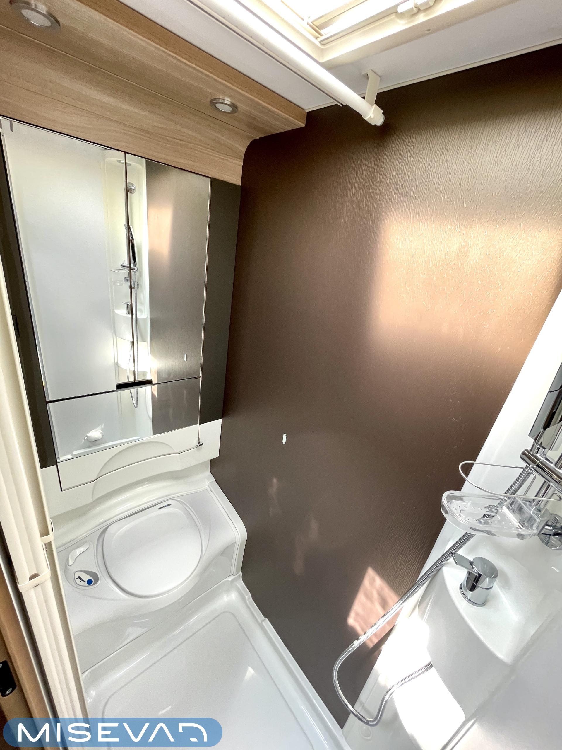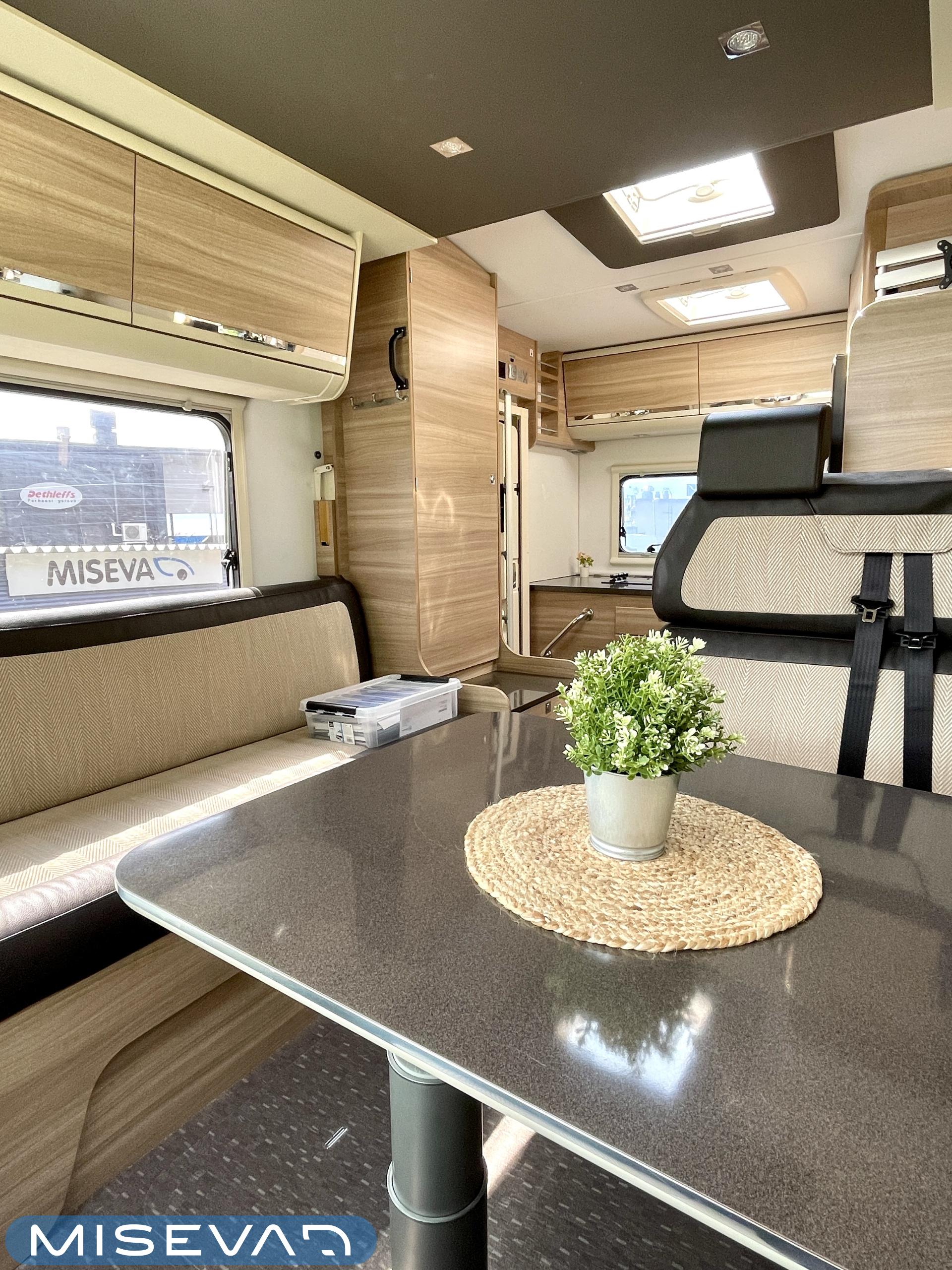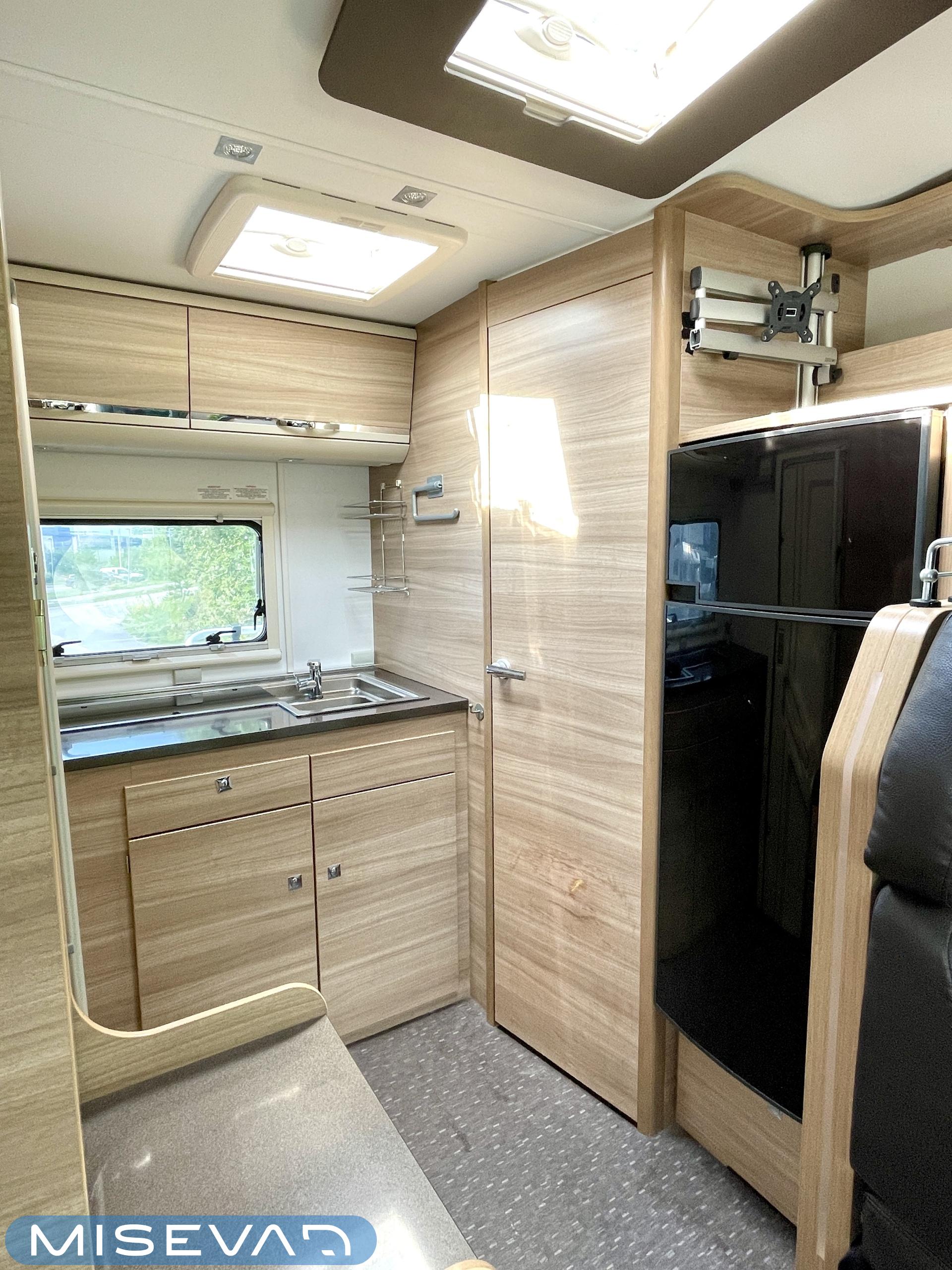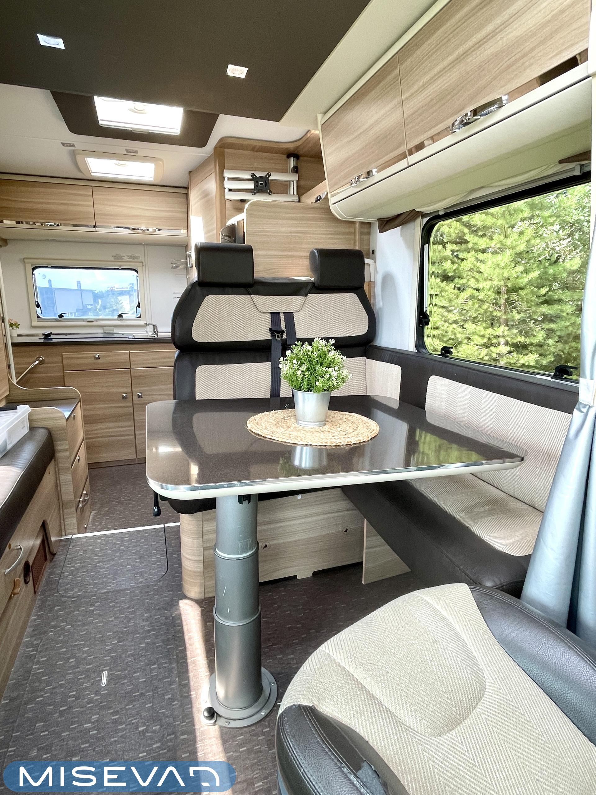 Truma, ABS brakes, Airbag, Fridge, Cassette WC, Cassette blinds, Roof hatch, Stove, Hot water boiler, Sun shade, Power steering, Freezer compartment, Sink, Pysäköintikamera, Bicycle rack, Radio, Shower, Electric windows, Power side mirrors, Electric steps, Turbo, Vakionopeudensäädin, Ilmastointi (ohjaamo), laskuvuode, jenkkijääkaappi, televisioteline, Asuinosan hyttysovi/verho, Electric heating cartridge