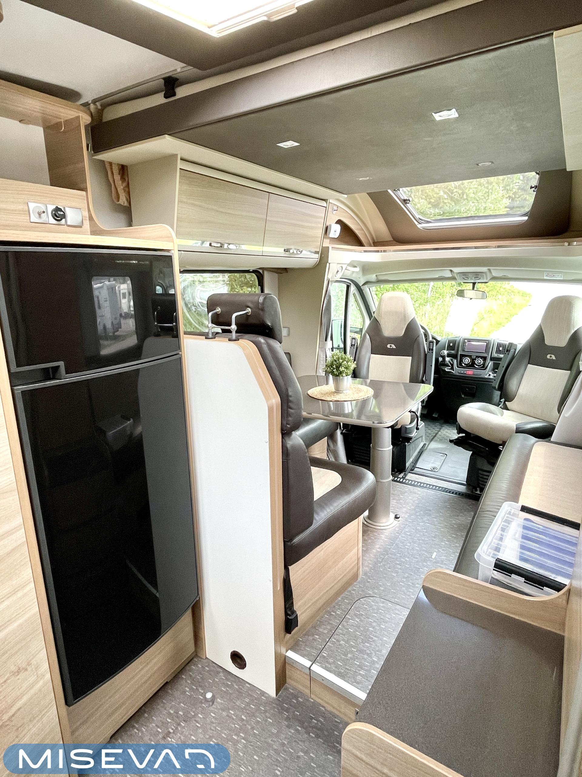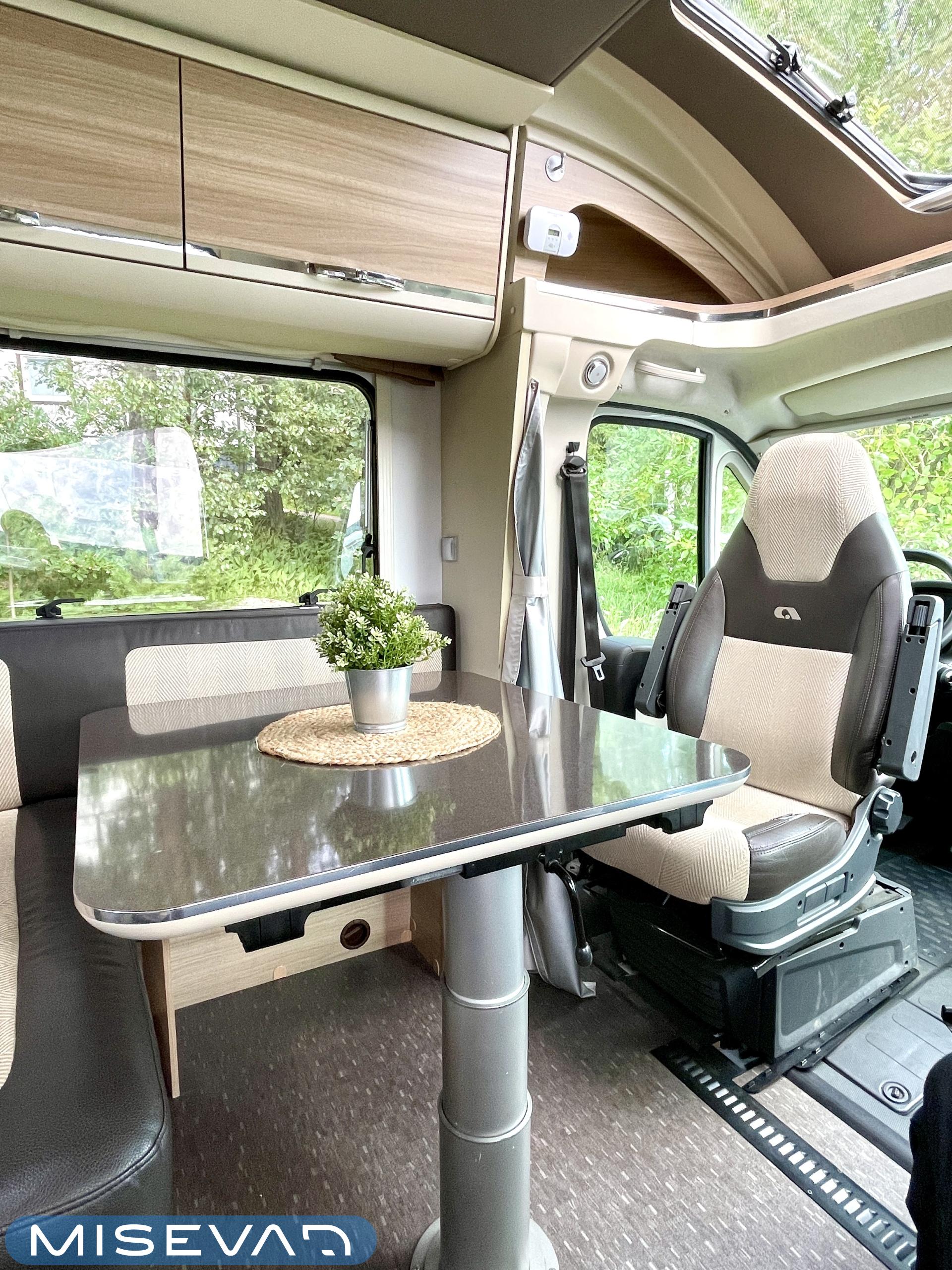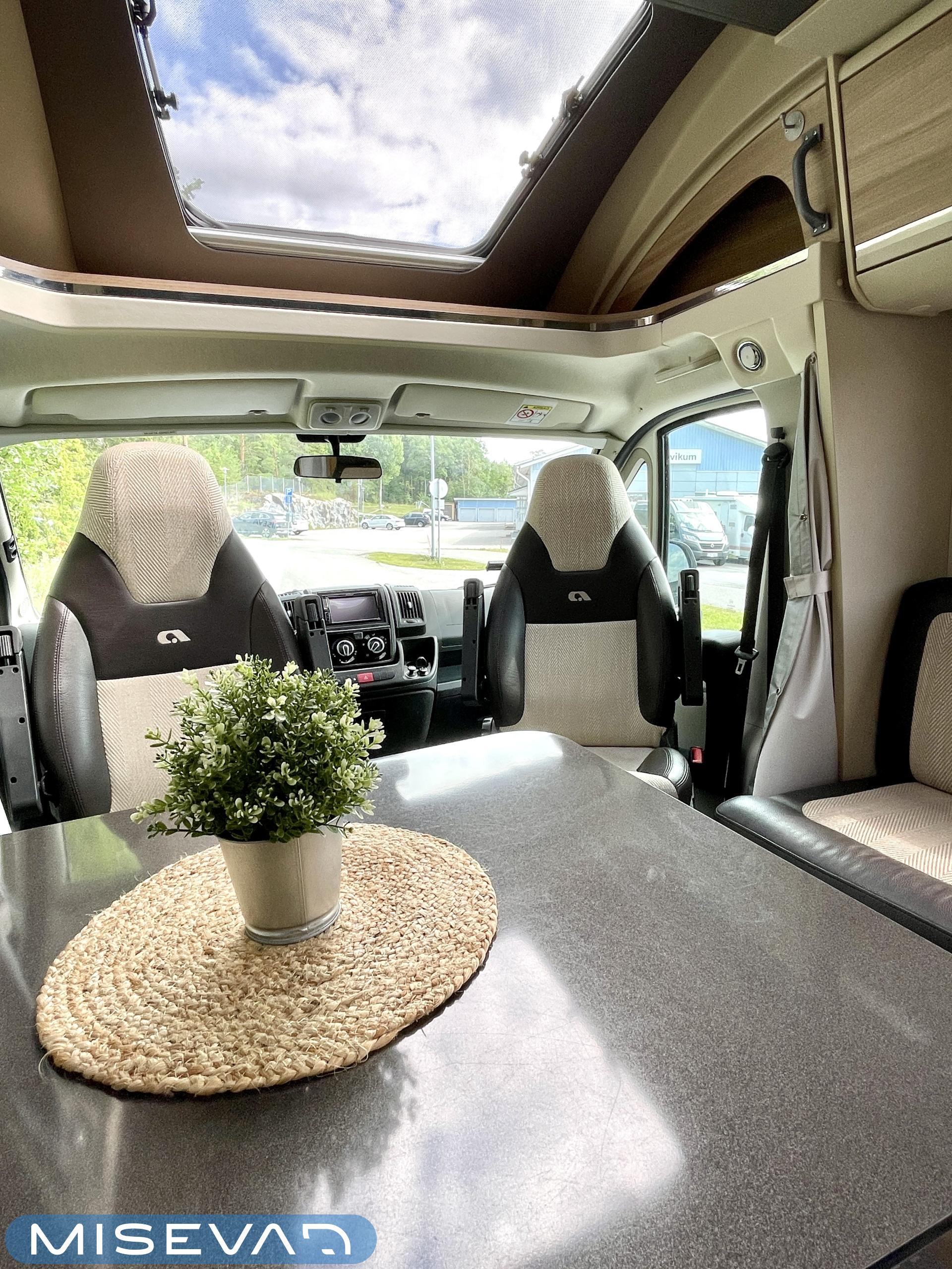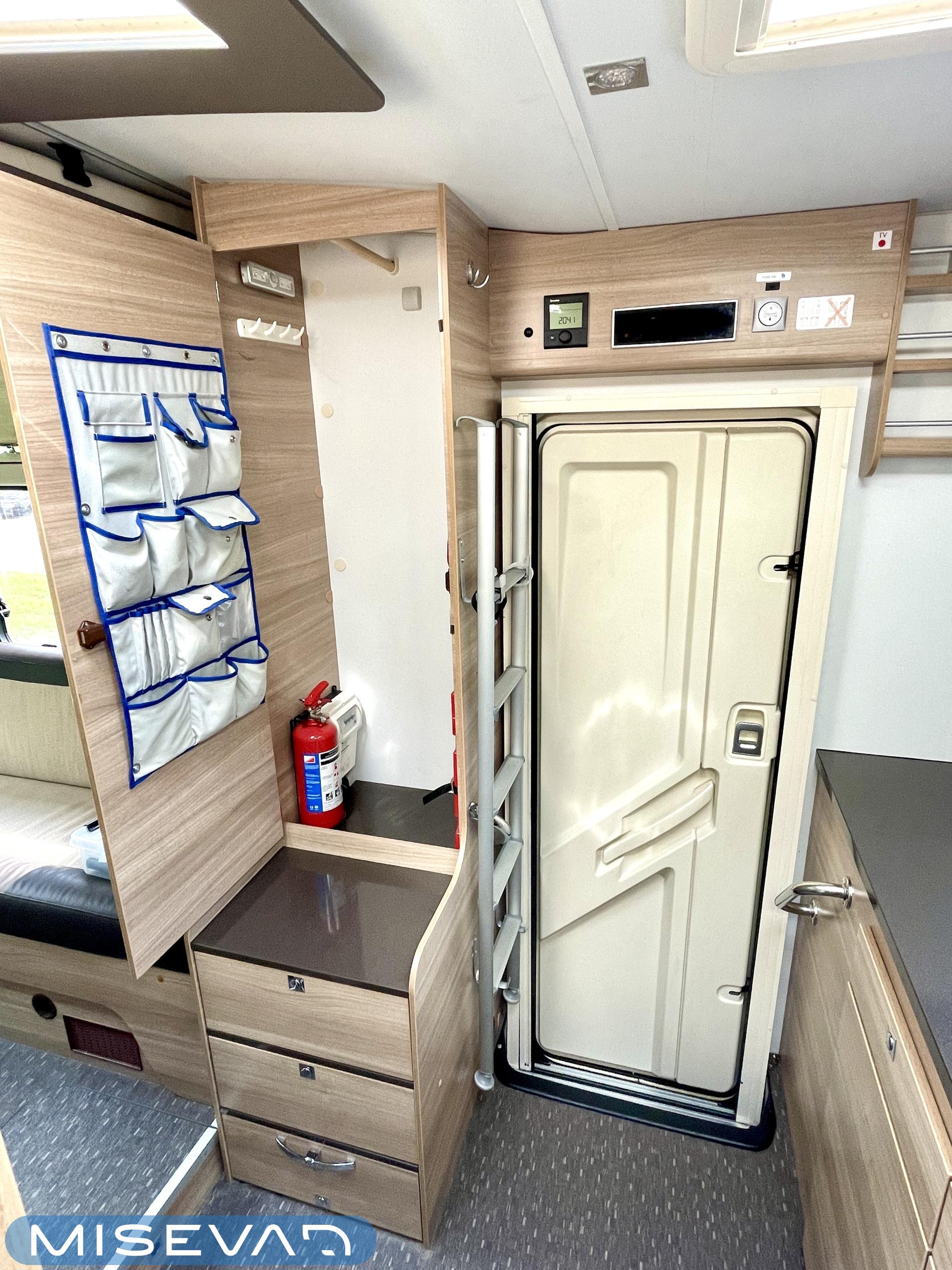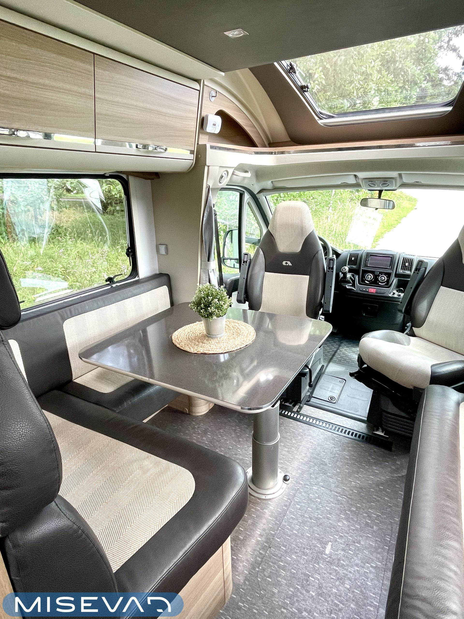 Truma, ABS brakes, Airbag, Fridge, Cassette WC, Cassette blinds, Roof hatch, Stove, Hot water boiler, Sun shade, Power steering, Freezer compartment, Sink, Pysäköintikamera, Bicycle rack, Radio, Shower, Electric windows, Power side mirrors, Electric steps, Turbo, Vakionopeudensäädin, Ilmastointi (ohjaamo), laskuvuode, jenkkijääkaappi, televisioteline, Asuinosan hyttysovi/verho, Electric heating cartridge