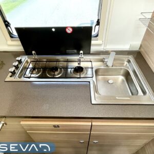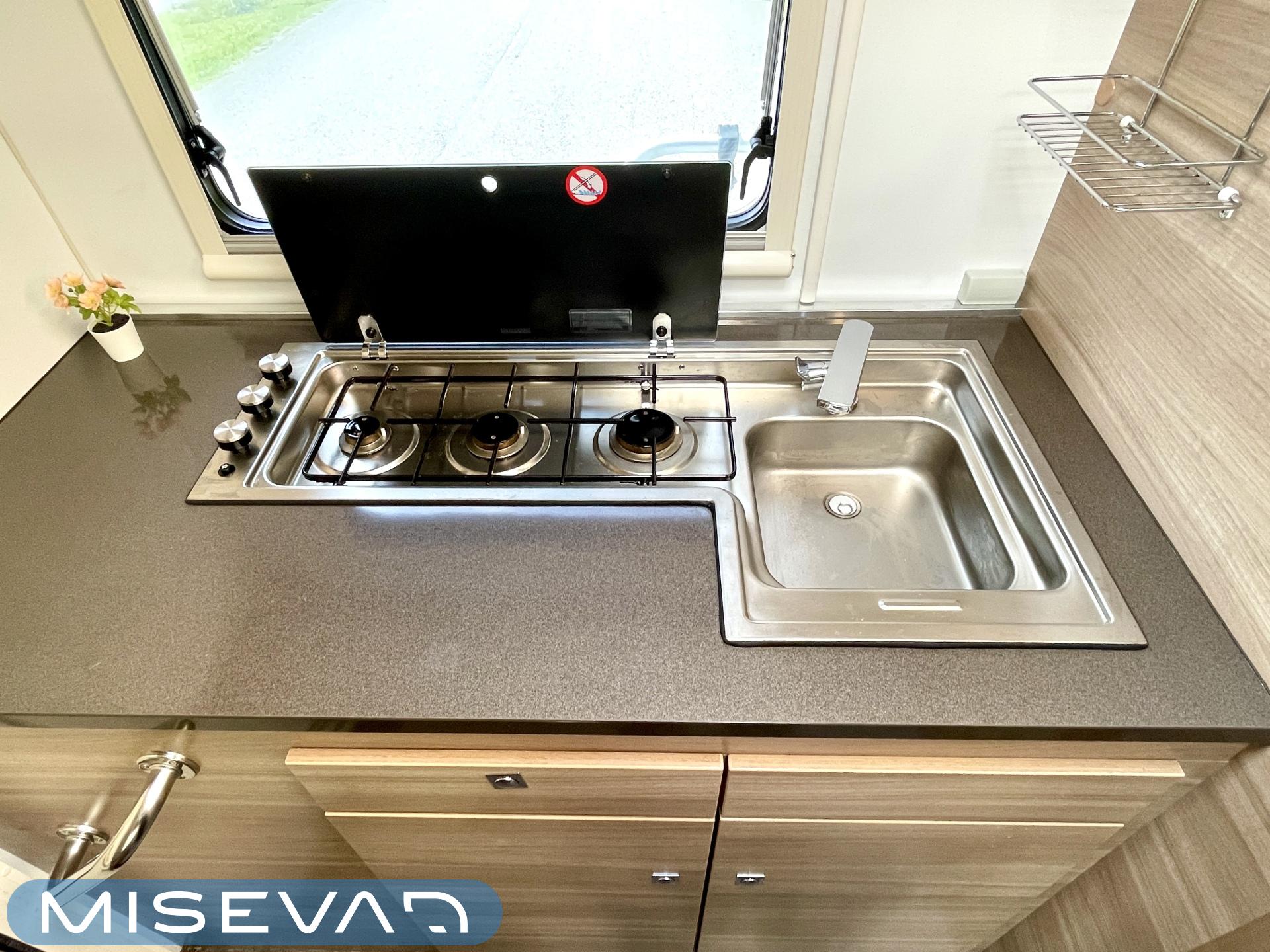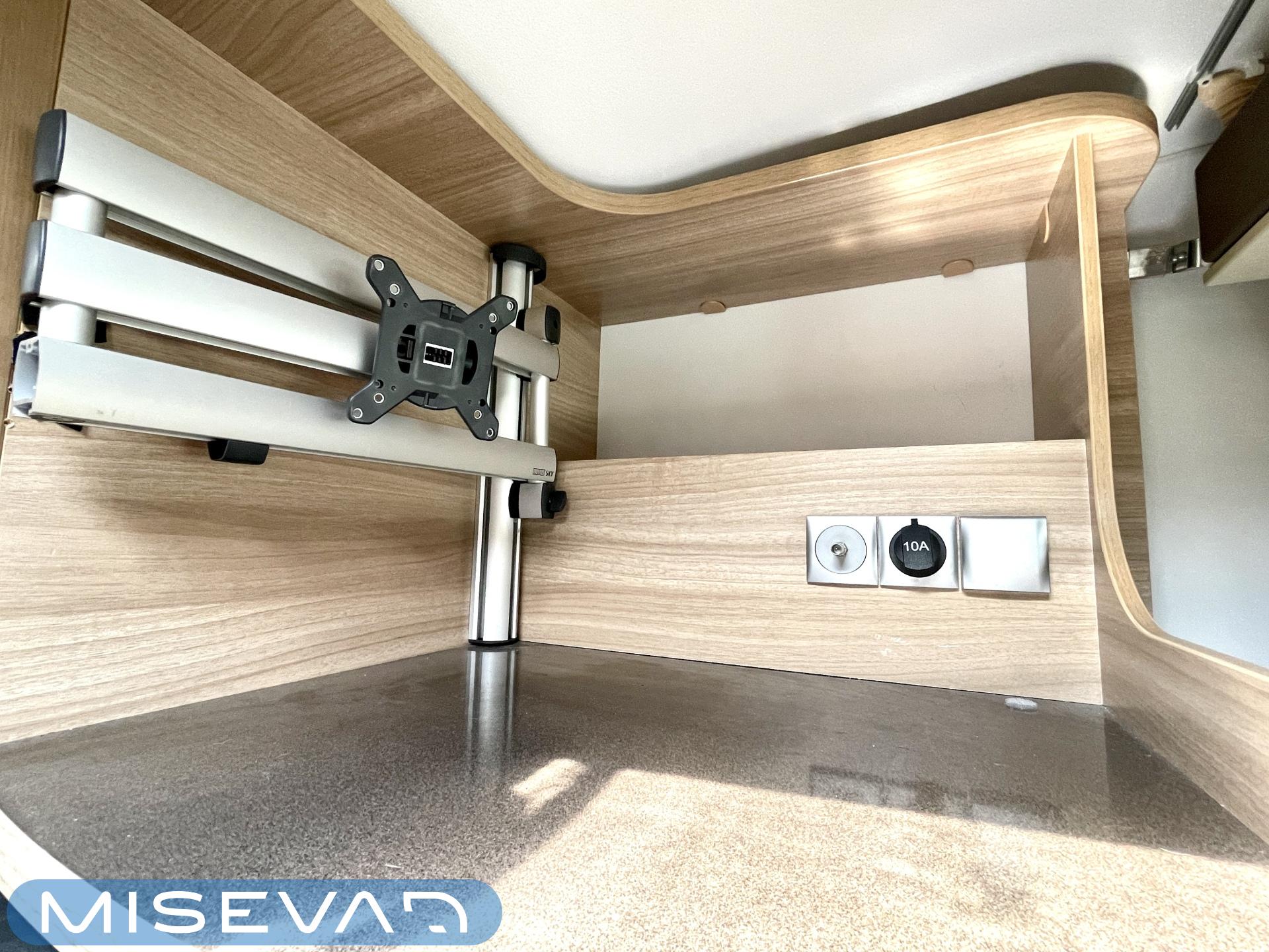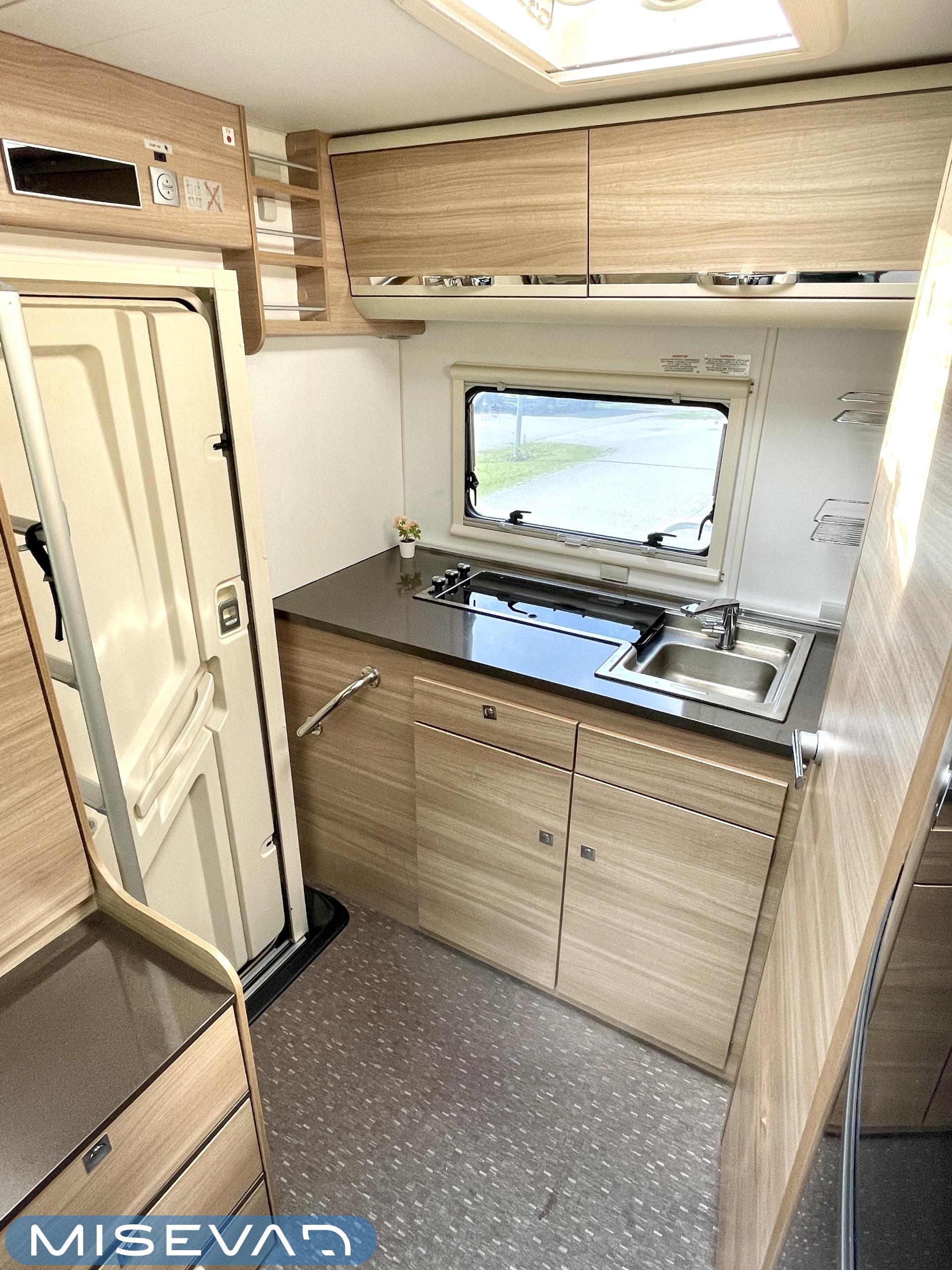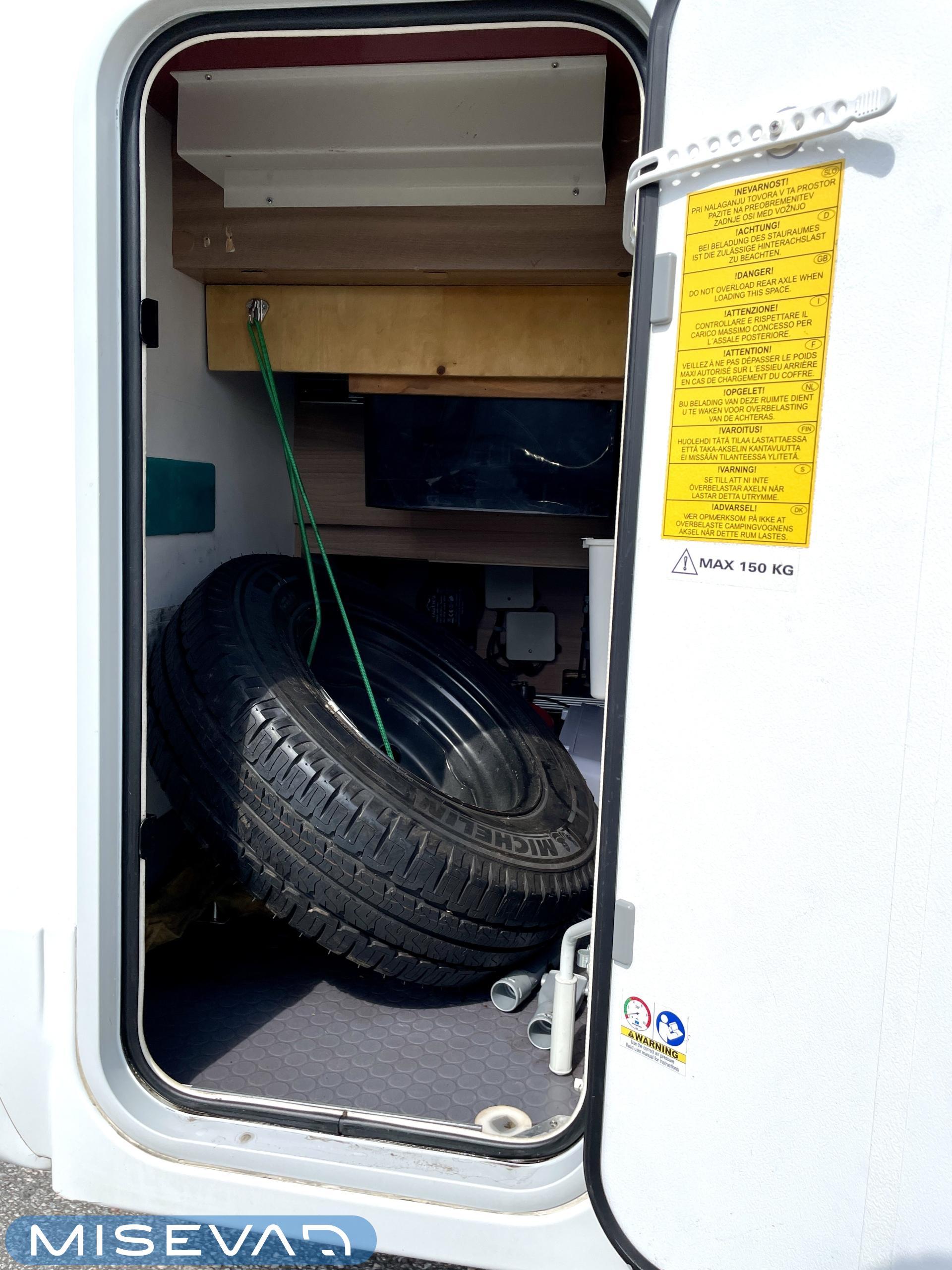 Truma, ABS brakes, Airbag, Fridge, Cassette WC, Cassette blinds, Roof hatch, Stove, Hot water boiler, Sun shade, Power steering, Freezer compartment, Sink, Pysäköintikamera, Bicycle rack, Radio, Shower, Electric windows, Power side mirrors, Electric steps, Turbo, Vakionopeudensäädin, Ilmastointi (ohjaamo), laskuvuode, jenkkijääkaappi, televisioteline, Asuinosan hyttysovi/verho, Electric heating cartridge