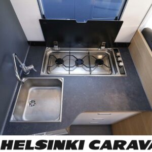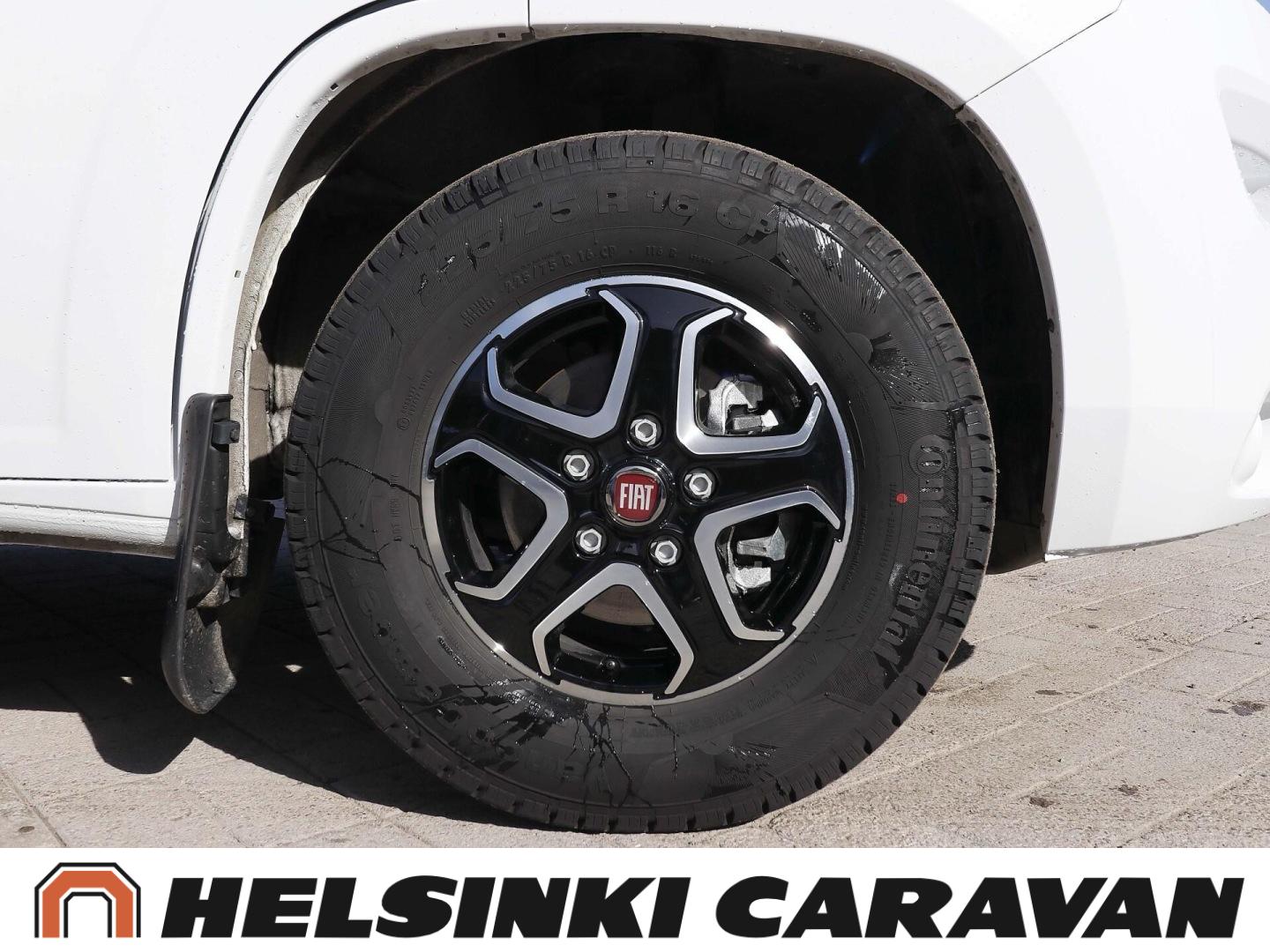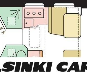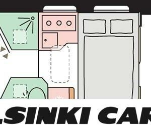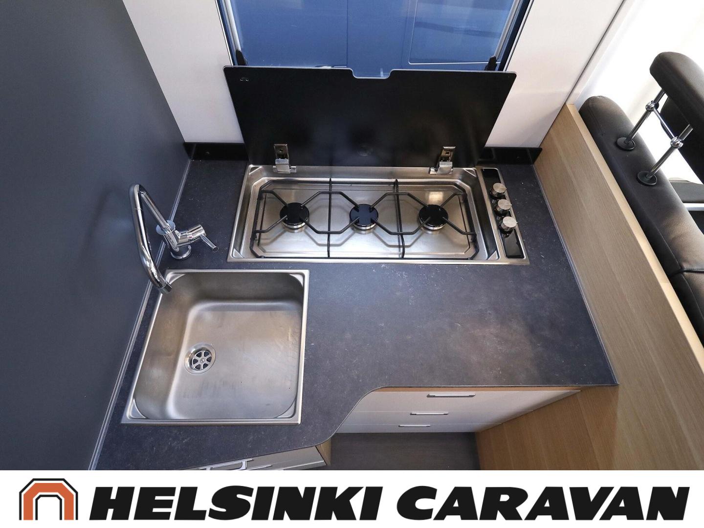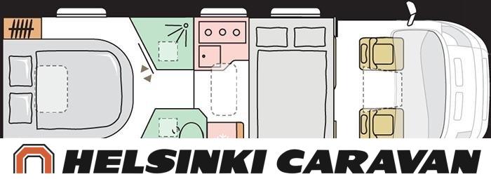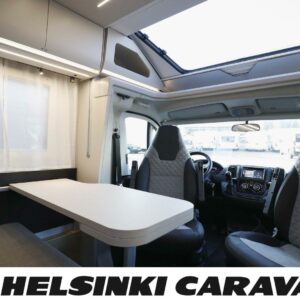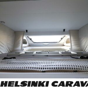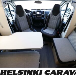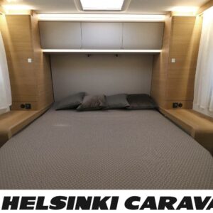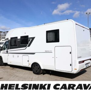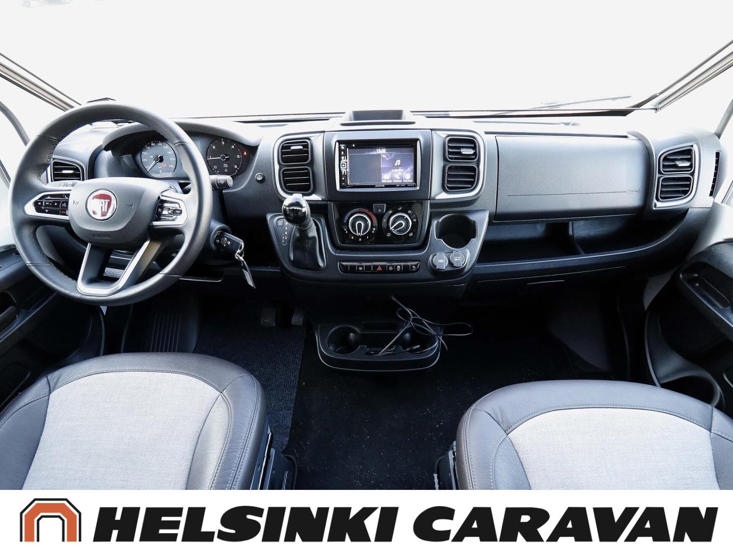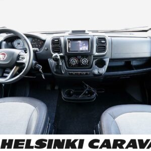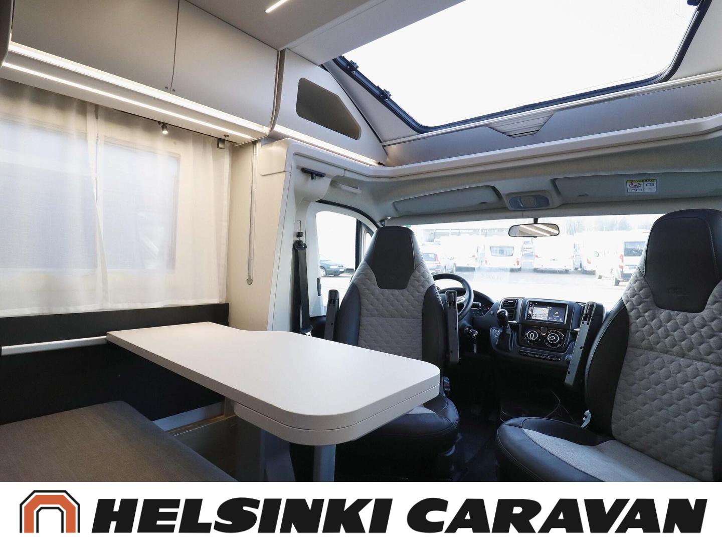 ESC system, Trip computer, Special wheels, Two tyre sets, Electric heating cartridge, Insulated grey water tank, Cab air conditioning, Fridge, Cassette WC, Roof railing/ladder, Roof hatch, Bunk bed, Central heating, Floor heating, Passenger area carpets, Traction control, Hot water boiler, Freezer compartment, Double bed, Shower, Power side mirrors, Electric steps, Trumatic, Vakionopeudensäädin, Pysäköintikamera