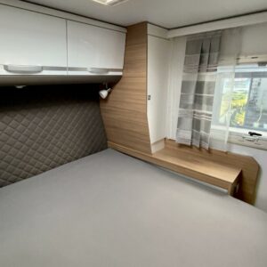 ABS brakes, Airbag, Alde, Solar panel, Bluetooth, Special wheels, Insulated grey water tank, Fridge, Gas oven, Two tyre sets, Cassette WC, Cassette blinds, Roof hatch, Keskuslukitus: Kaukosäätöinen, Central heating, Floor heating, Passenger area carpets, Stove, Traction control, Hot water boiler, Sun shade, Navigator, Fluid circulation heating, Power steering, Freezer compartment, Double bed, Sink, Pysäköintikamera, Bicycle rack, Radio, Shower, Electric windows, Electric heating cartridge, Power side mirrors, TV-antenni tai lautasantenni, Turbo, Vakionopeudensäädin, Lattialämmitys (nestekierto), Ilmastointi (ohjaamo), Ilmastointi (asuintila), Talvirenkaat(kitka), Tupla-akut, Invertteri, harmaavesisäiliön lämmitys, laskuvuode, Alde lämmönvaihdin, Alde ohjaamon nestekiertoinen matto, ohjaamon kasettiverhot, jenkkijääkaappi, liesituuletin, televisio, Multimedialaite (sis. p-kamera, navi, Player, bluetooth, handsfree), Asuinosan hyttysovi/verho, Support legs, kwh-mittari