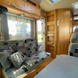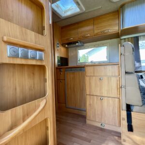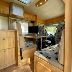 Airbag, Fridge, Ilmastointi: Manuaalinen, Cab air conditioning, Two tyre sets, Cassette WC, Cassette blinds, Roof hatch, Keskuslukitus: Kaukosäätöinen, Central heating, Ignition interlock, Floor heating, Stove, Engine heater, Hot water boiler, Sink, Double bed, Freezer compartment, Power steering, Sun shade, Pysäköintikamera, Radio, Shower, Electric heating cartridge, Turbo, Trumatic, Electric steps, Bicycle rack, Electric windows, Traction control, Vakionopeudensäädin, TV-antenni tai lautasantenni