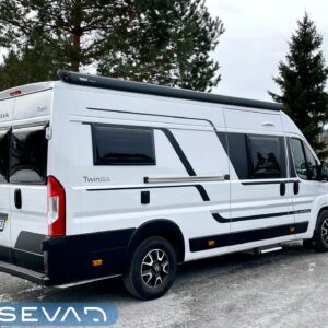 Bluetooth, Special wheels, Separate beds, Fridge, Cassette WC, Cassette blinds, Roof hatch, Keskuslukitus: Kaukosäätöinen, Passenger area carpets, Stove, Hot water boiler, Sun shade, Freezer compartment, Sink, Radio, Shower, Electric windows, Electric heating cartridge, Power side mirrors, Electric steps, Turbo, Vakionopeudensäädin, Truma, Ilmastointi (ohjaamo), Kesärenkaat, 1 x kevytmet.vanteet, televisioteline, Asuinosan hyttysovi/verho