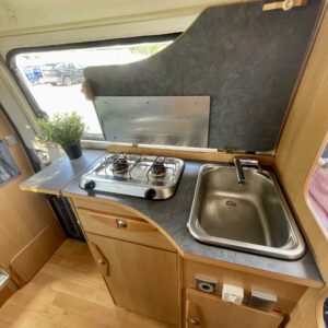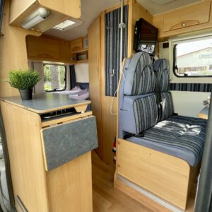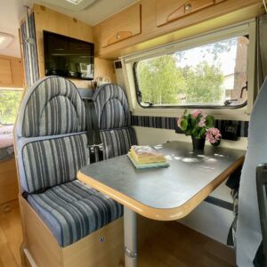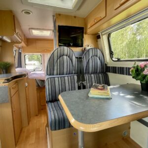 Special wheels, Cassette WC, Cab air conditioning, Fridge, Roof hatch, Stove, Electric steps, Trumatic, Sun shade