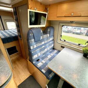 Trip computer, Airbag, Cab air conditioning, Air conditioning man., Fridge, Two tyre sets, Cassette WC, Cassette blinds, Roof hatch, Central locking with remote, Ignition interlock, Stove, Hot water boiler, Power steering, Double bed, Sink, Fuel-operated additional heater, Shower, Electric windows, Power side mirrors, Electric steps, Trumatic, Turbo, Cruise control, Player