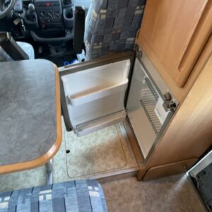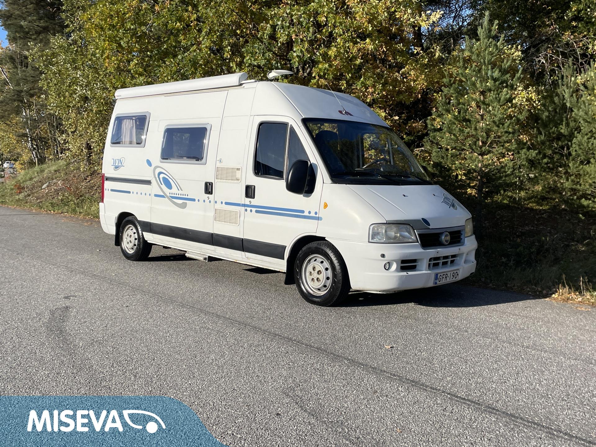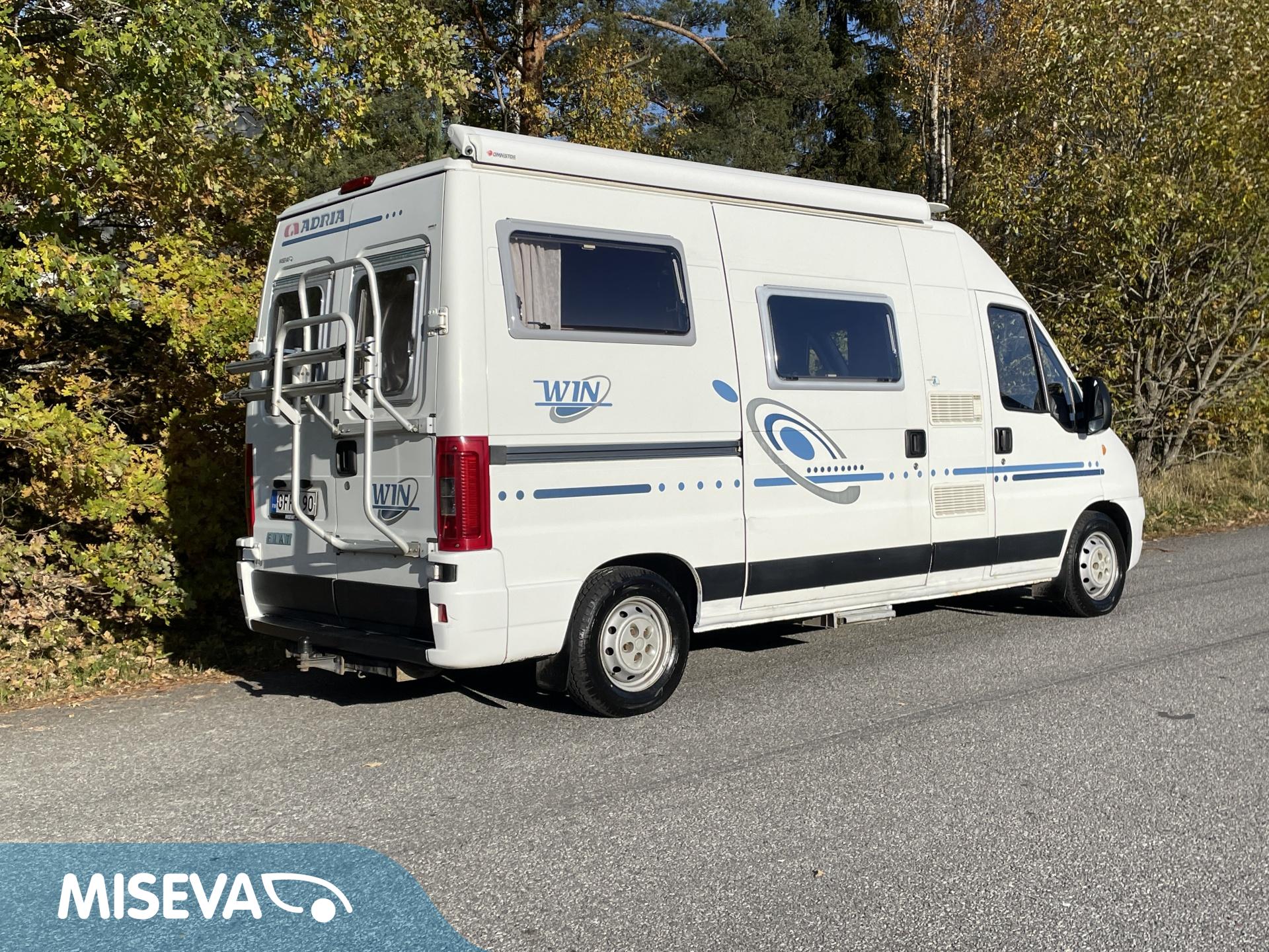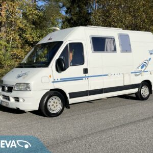 Fridge, Cassette WC, Stove, Engine heater, Hot water boiler, Sun shade, Power steering, Freezer compartment, Double bed, Sink, Bicycle rack, Radio, TV-antenni tai lautasantenni, Turbo, Towing hook, Truma, televisioteline, Electric windows, Power side mirrors, Electric steps