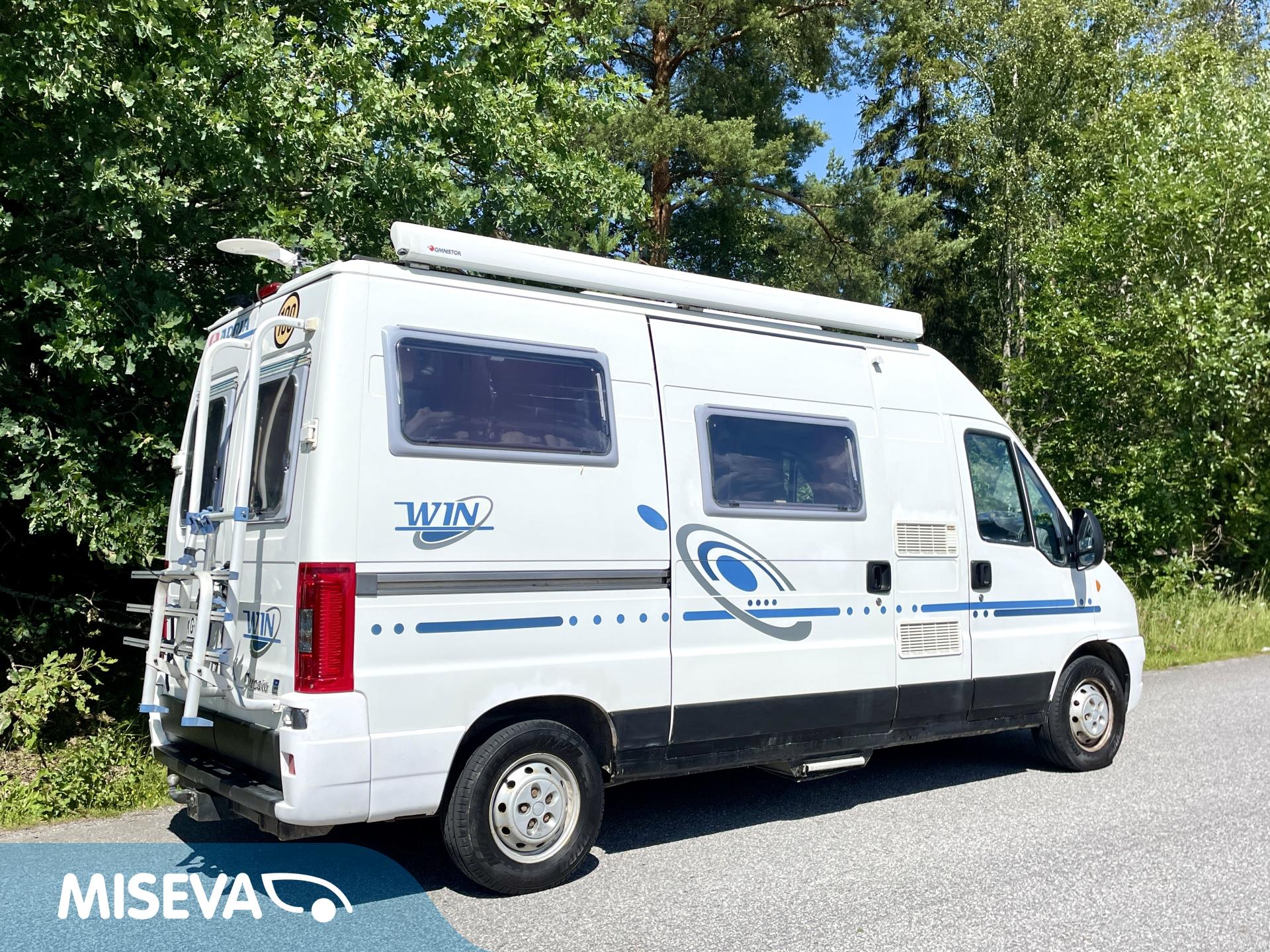 Truma, Fridge, Two tyre sets, Cassette WC, Cassette blinds, Roof hatch, Stove, Engine heater, Hot water boiler, Sun shade, Power steering, Freezer compartment, Double bed, Sink, Fuel-operated additional heater, Bicycle rack, Radio, Interior plug, Electric steps, Turbo, Towing hook, Webasto/Eber, televisio, Peruutuskamera