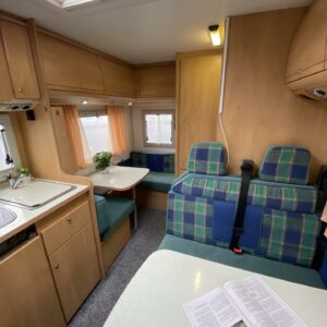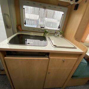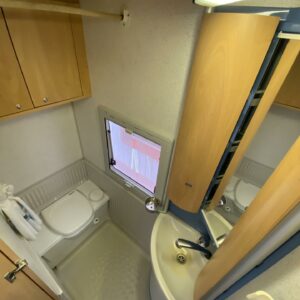 Double bottom, Fridge, Cassette WC, Sun shade, Radio, Power steering, Freezer compartment, Electric steps, Bicycle rack, Roof hatch, Central heating, Stove, Engine heater, Hot water boiler, Sink, Trumatic