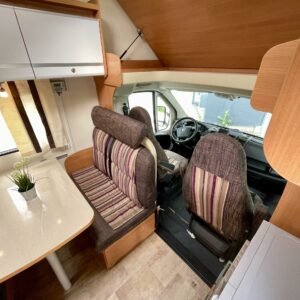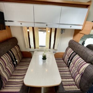 Two tyre sets, Trumatic- ilmapuhalluslämmitys, Bicycle rack, Sun shade, Bunk bed, Service history, ABS brakes, Airbag, Trip computer, Solar panel, Fridge, Keskuslukitus: Kaukosäätöinen, Ignition interlock, Stove, Engine heater, Traction control, Hot water boiler, Microwave oven, Freezer compartment, Sink, Radio, Electric windows, Electric heating cartridge, Power side mirrors, Electric steps, TV-antenni tai lautasantenni, Turbo, Vakionopeudensäädin, Towing hook, Ilmastointi: Manuaalinen, Cassette WC, Cassette blinds, Roof hatch, televisio, Invertteri, Truma, kaasun ulosotto, Peruutuskamera, Asuinosan hyttysovi/verho, harmaavesisäiliön lämmitys, Polkupyöräteline, Floor heating