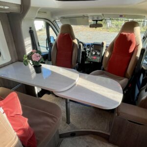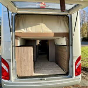 ABS brakes, Airbag, Trip computer, Solar panel, Cab air conditioning, Fridge, Two tyre sets, Cassette WC, Roof hatch, Central heating, Passenger area carpets, Power steering, Double bed, Sink, Radio, Electric windows, Electric heating cartridge, Power side mirrors, Trumatic, Turbo, Vakionopeudensäädin, Tupla-akut, harmaavesisäiliön lämmitys, pullonvaihtaja, kaasun ulosotto, sähkön ulosotto, suihkun ulosotto, Cassette blinds, Stove, Hot water boiler, Freezer compartment, Electric steps, Ilmastointi (ohjaamo), Invertteri, ohjaamon kasettiverhot, ESC system, Ignition interlock, Traction control, Fuel-operated additional heater, Shower