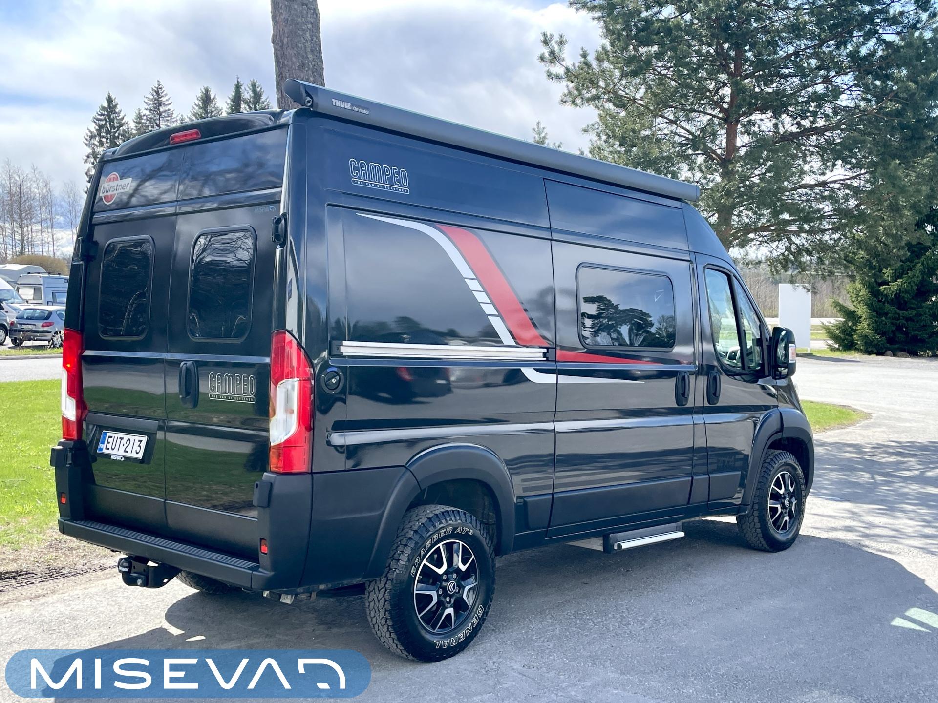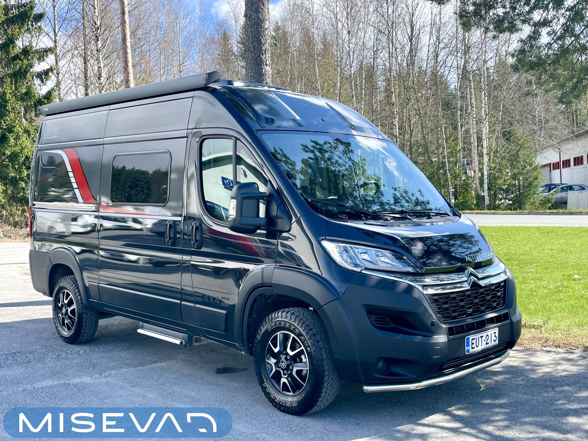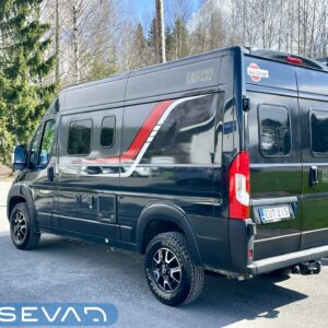 Towing hook, Two tyre sets, Sun shade, Engine heater, ABS brakes, Airbag, ESC system, Trip computer, Cab air conditioning, Special wheels, Ilmastointi: Manuaalinen, Fridge, Cassette WC, Cassette blinds, Roof hatch, Ignition interlock, Central heating, Keskuslukitus: Kaukosäätöinen, Passenger area carpets, Stove, Traction control, Hot water boiler, Sink, Double bed, Freezer compartment, Power steering, Radio, Shower, Electric windows, Electric heating cartridge, Power side mirrors, Turbo, Trumatic, Electric steps