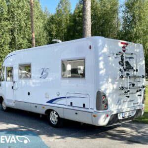 Alde, Fridge, Ilmastointi: Manuaalinen, Cab air conditioning, Cassette WC, Cassette blinds, Roof hatch, Central heating, Ignition interlock, Passenger area carpets, Stove, Hot water boiler, Sink, Double bed, Freezer compartment, Power steering, Fluid circulation heating, Pysäköintikamera, Radio, Shower, Electric windows, Electric heating cartridge, Power side mirrors, Turbo, Vakionopeudensäädin, TV-antenni tai lautasantenni, Sun shade, Microwave oven, Bicycle rack, Electric steps, Two tyre sets, CD-soitin, Special wheels, Hardwood decoration, Floor heating, Double bottom, Fuel-operated additional heater