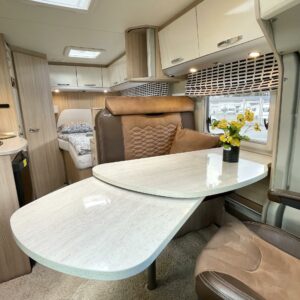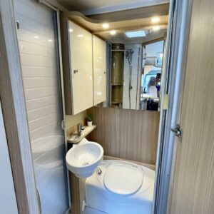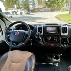 ABS brakes, Airbag, Trip computer, Trumatic, Electric heating cartridge, Lattialämmitys (sähkö), Special wheels, Fridge, Cassette WC, Cassette blinds, Roof hatch, Stove, Double bed, Freezer compartment, Sun shade, Power steering, Seat heaters, Sink, Engine heater, Bicycle rack, Radio, Shower, Electric windows, Power side mirrors, Vakionopeudensäädin, Hot water boiler, Ignition interlock, Floor heating, Passenger area carpets, Traction control, Leather interior, Pysäköintikamera, Turbo, ohjaamon kasettiverhot, Ilmastointi (ohjaamo), Asuinosan hyttysovi/verho, Polkupyöräteline, Insulated grey water tank, harmaavesisäiliön lämmitys, TV-antenni tai lautasantenni