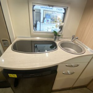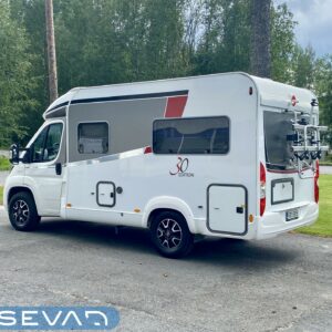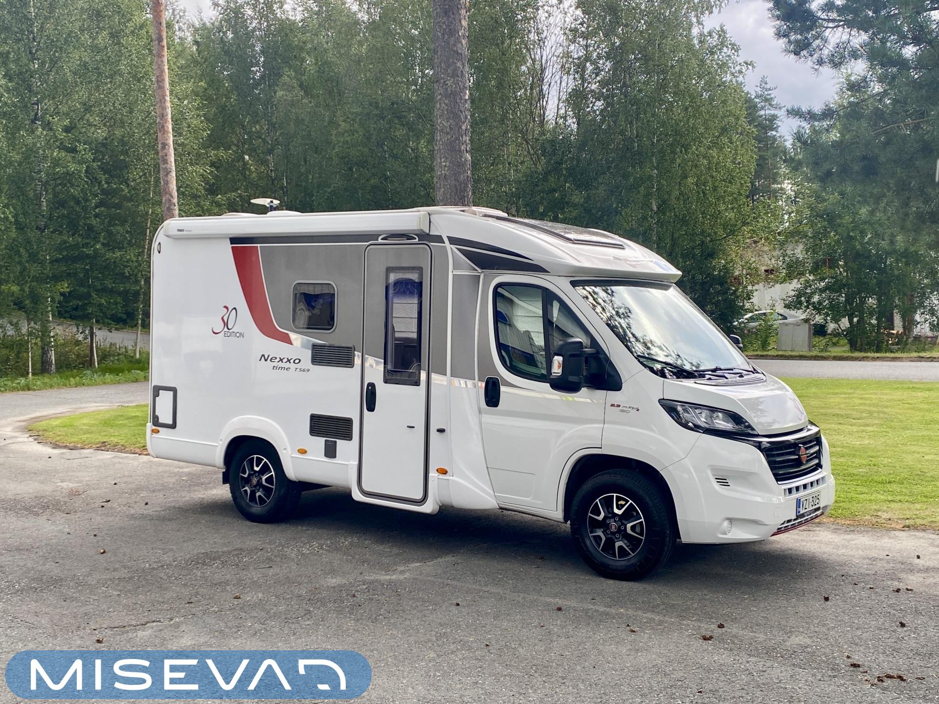 Cab air conditioning, Fridge, Cassette WC, Cassette blinds, Roof hatch, Central heating, Passenger area carpets, Stove, Hot water boiler, Sun shade, Navigator, Power steering, Freezer compartment, Double bed, Sink, Pysäköintikamera, Bicycle rack, Radio, Shower, Electric windows, Electric heating cartridge, Power side mirrors, Trumatic, Vakionopeudensäädin, Lattialämmitys (sähkö), JP-huollot ok, Kesärenkaat, 1 x kevytmet.vanteet, harmaavesisäiliön lämmitys, sähkön ulosotto, Multimedialaite (sis. p-kamera, navi, Player, bluetooth, handsfree), Asuinosan hyttysovi/verho