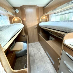 ABS brakes, Alde, Separate beds, Cab air conditioning, Air conditioning aut., Air conditioning man., Fridge, Two tyre sets, Cassette WC, Central heating, Floor heating, Passenger area carpets, Stove, Hot water boiler, Sun shade, Fluid circulation heating, Parking sensor/camera, Seat heaters, Shower, Electric windows, Electric heating cartridge, Power side mirrors, TV antenna/satellite dish, Cruise control, Navigating system, Parking sensor/camera, Airbags, Player