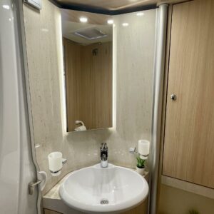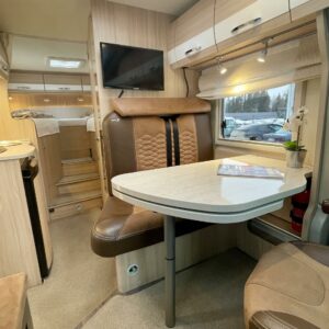 ABS brakes, Airbag, ESC system, Trip computer, Solar panel, CD-soitin, Separate beds, Cab air conditioning, Fridge, Cassette WC, Cassette blinds, Roof hatch, Keskuslukitus: Kaukosäätöinen, Passenger area carpets, Stove, Sun shade, Navigator, Power steering, Freezer compartment, Sink, Radio, Shower, Electric windows, Electric heating cartridge, Power side mirrors, Electric steps, Trumatic, USB, Vakionopeudensäädin, Webasto/Eber, Invertteri, Two tyre sets, Hot water boiler, Towing hook, Bicycle rack, Pysäköintikamera, Ilmastointi: Manuaalinen, Central heating, Ignition interlock, Turbo