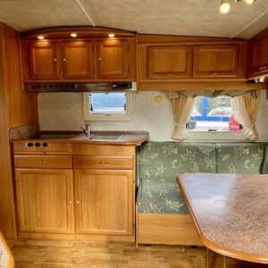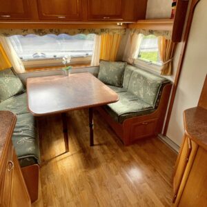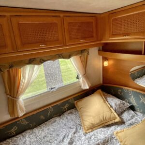 Alde, Special wheels, Fridge, Cassette WC, Cassette blinds, Roof hatch, Stove, Fluid circulation heating, Freezer compartment, Double bed, Sink, Radio, Interior plug, Shower, Electric heating cartridge, Support legs