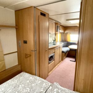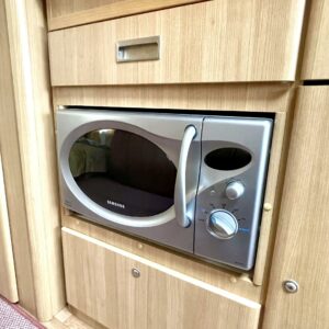 Alde, Fridge, Cassette WC, Roof hatch, Sun shade, Hot water boiler, Microwave oven, Fluid circulation heating, Freezer compartment, Double bed, Sink, Radio, Bicycle rack, Electric heating cartridge