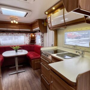 Alde, CD-soitin, Special wheels, Insulated grey water tank, Ilmastointi: Automaattinen, Fridge, Cassette WC, Cassette blinds, Roof hatch, Bunk bed, Floor heating, Stove, Hot water boiler, Microwave oven, Fluid circulation heating, Freezer compartment, Double bed, Sink, Radio, Electric heating cartridge, TV-antenni tai lautasantenni, Support legs, kwh-mittari, kaasun ulosotto, televisioteline
