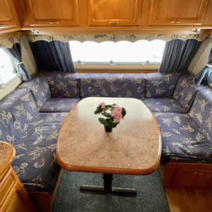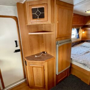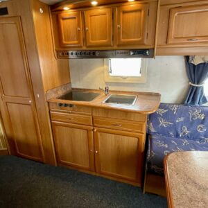 Alde, Fridge, Cassette WC, Cassette blinds, Roof hatch, Central heating, Floor heating, Stove, Hot water boiler, Freezer compartment, Double bed, Sink, Shower, Electric heating cartridge, Support legs, 1 x kevytmet.vanteet, kwh-mittari, sähkön ulosotto, Radio, Fluid circulation heating
