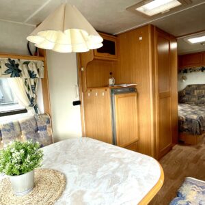Alde, Fridge, Cassette WC, Cassette blinds, Roof hatch, Stove, Hot water boiler, Fluid circulation heating, Freezer compartment, Double bed, Sink, Electric heating cartridge, Support legs, Lattialämmitys (sähkö), kwh-mittari, ranskalainen vuode, TV-antenni tai lautasantenni