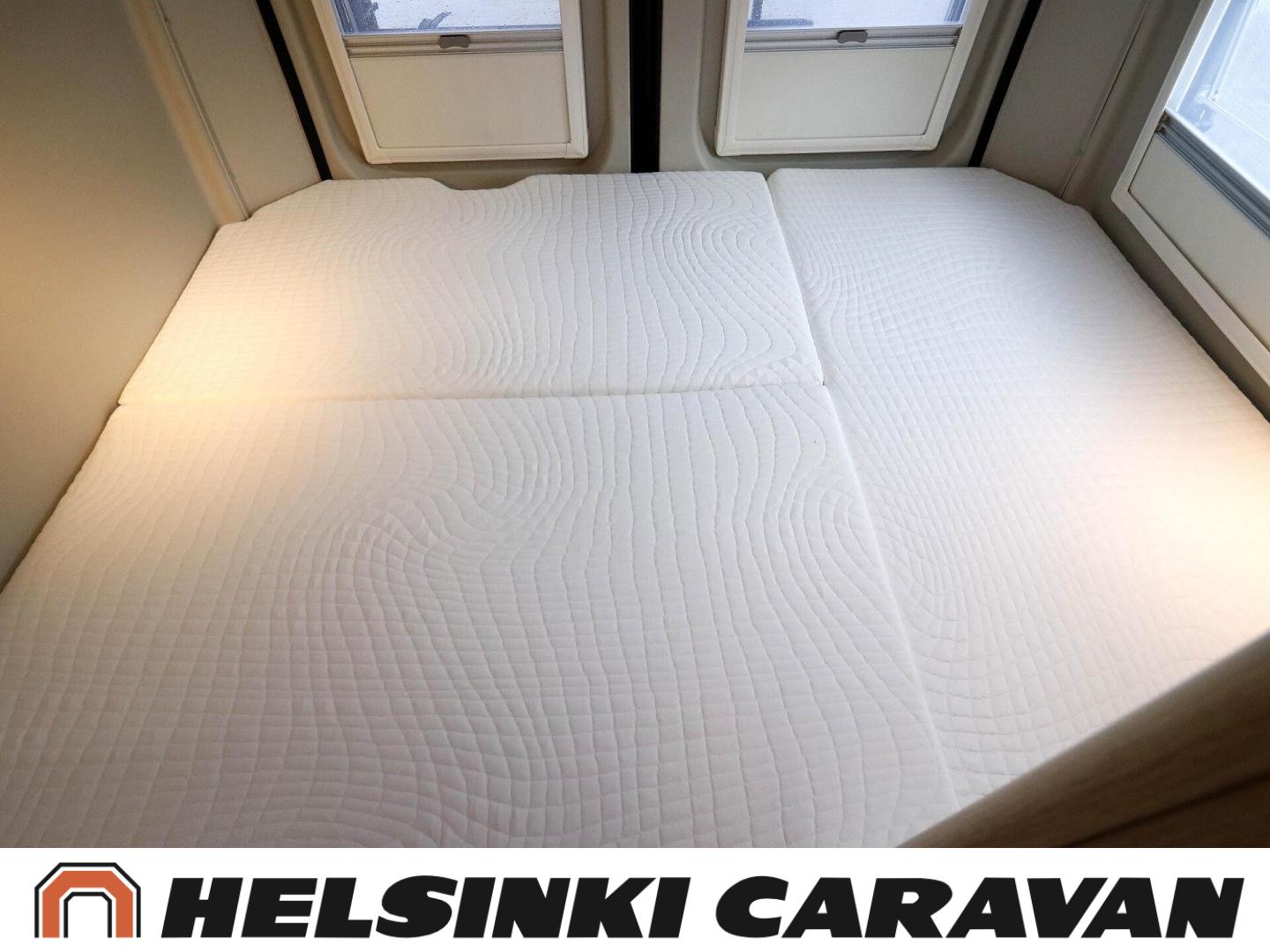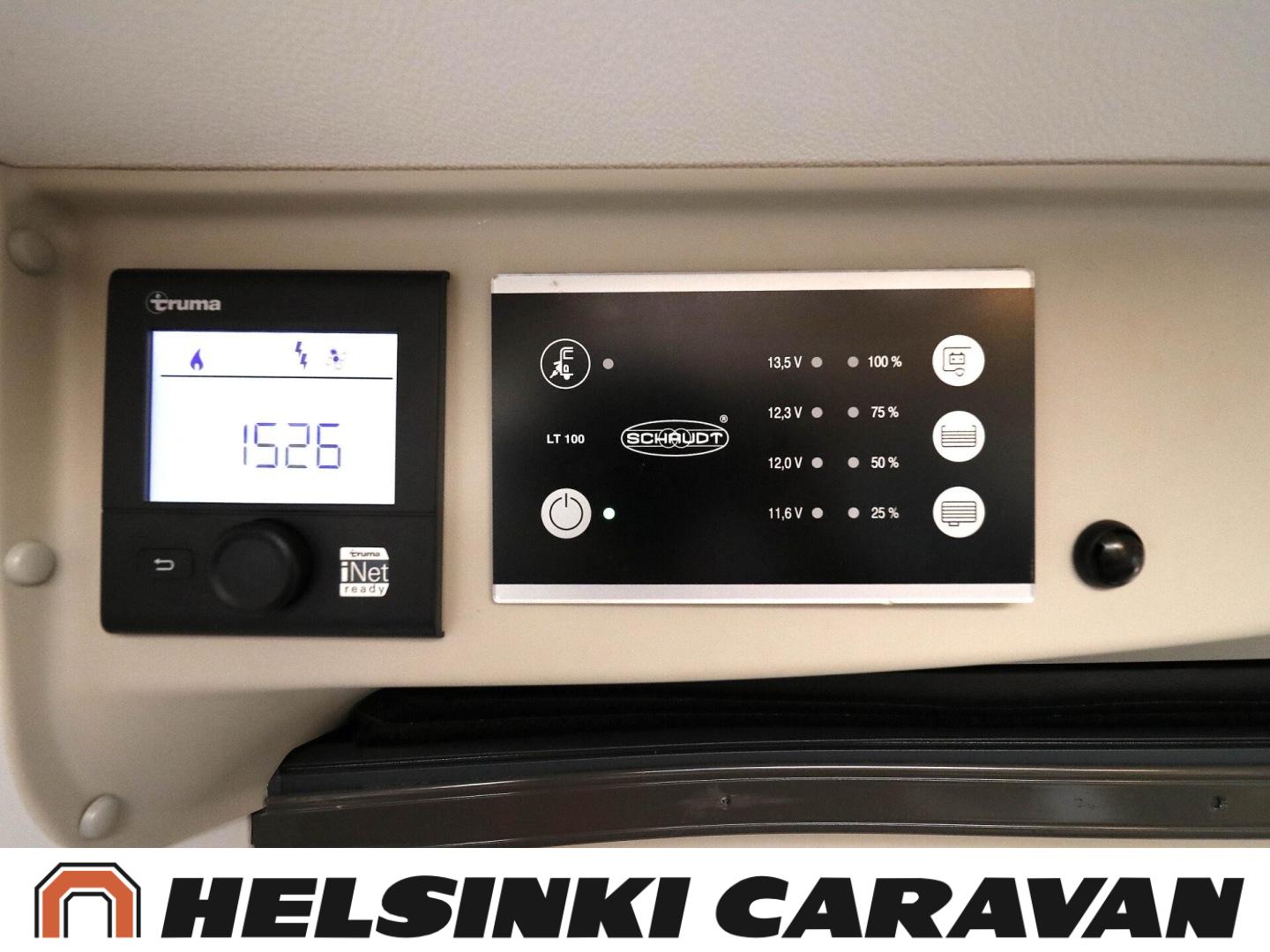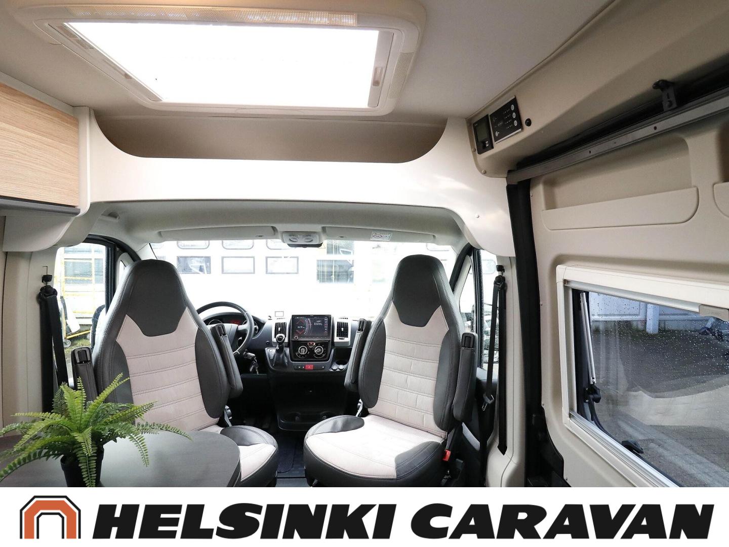 ESC system, Trip computer, Bluetooth, Special wheels, Fridge, Cassette WC, Cassette blinds, Roof hatch, Keskuslukitus: Kaukosäätöinen, Ignition interlock, Stove, Hot water boiler, Traction control, Sun shade, Freezer compartment, Double bed, Bicycle rack, Radio, Shower, Electric windows, Electric heating cartridge, Power side mirrors, Trumatic, Vakionopeudensäädin