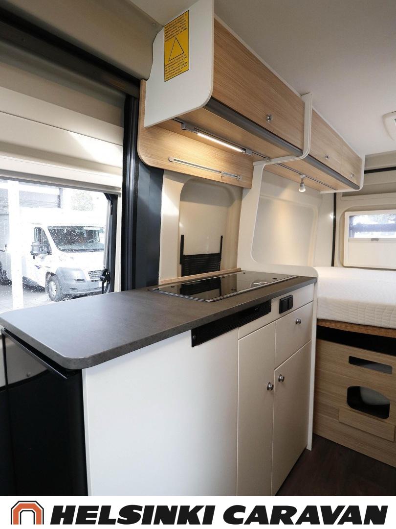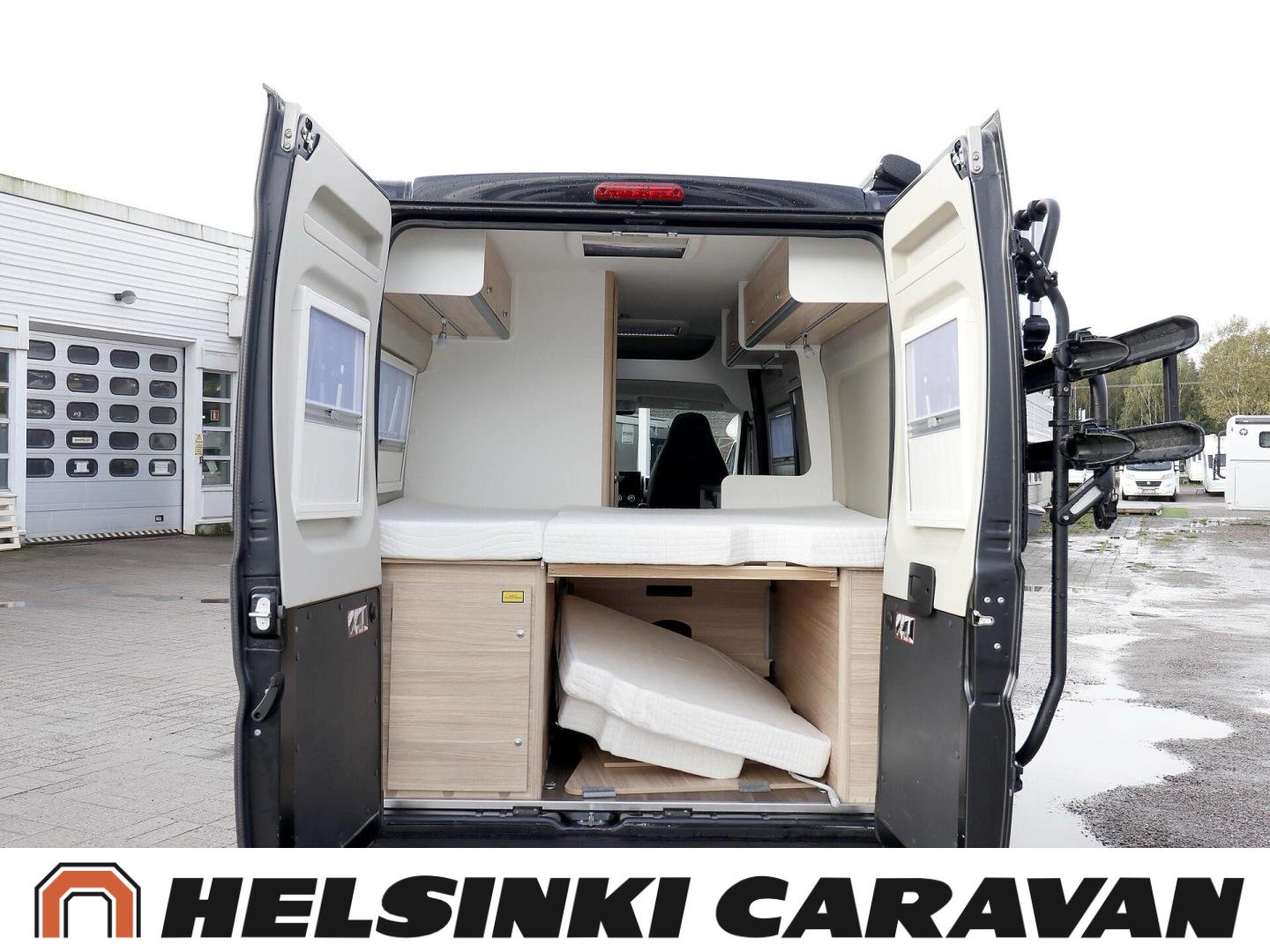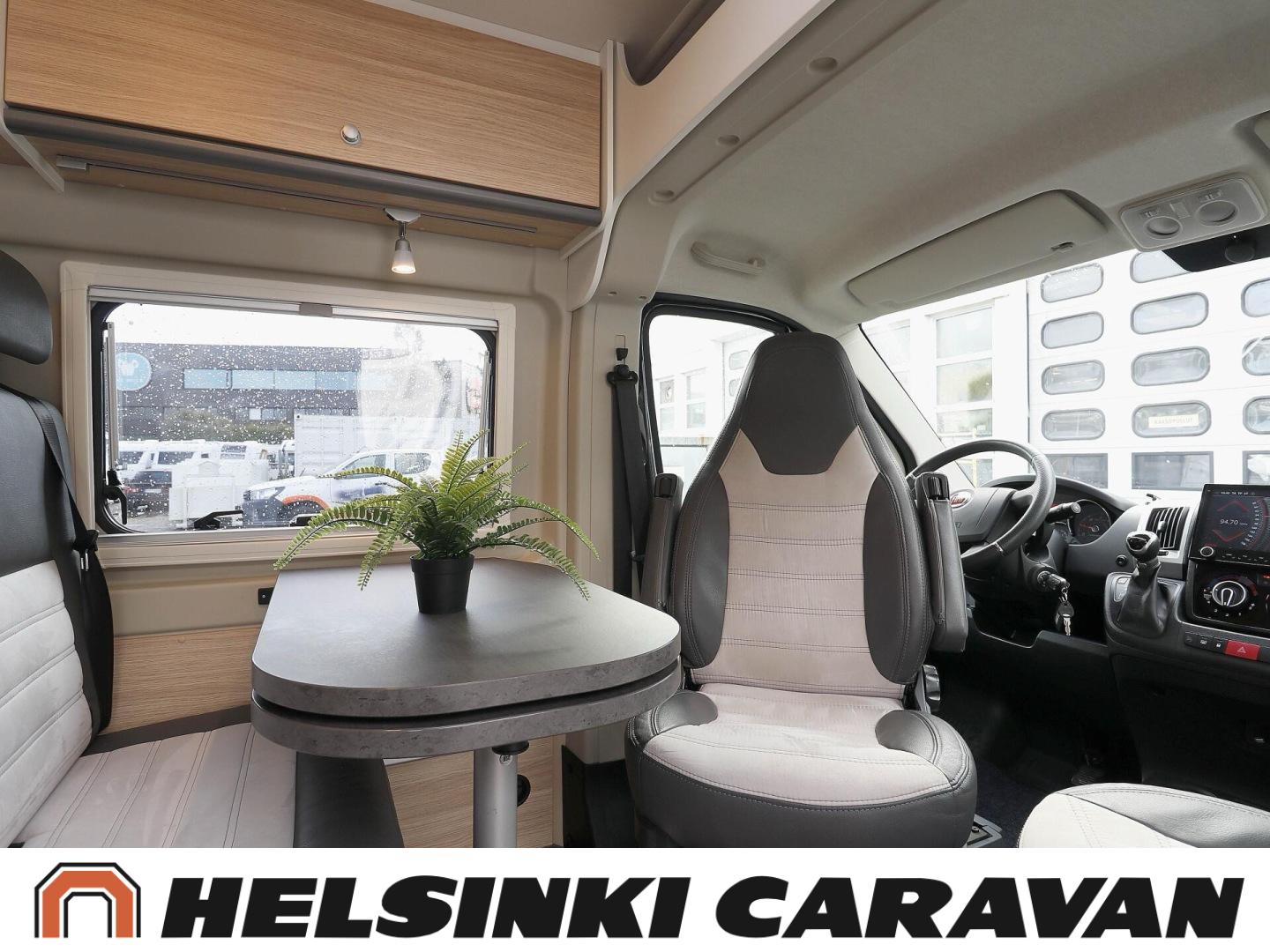 ESC system, Trip computer, Bluetooth, Special wheels, Fridge, Cassette WC, Cassette blinds, Roof hatch, Keskuslukitus: Kaukosäätöinen, Ignition interlock, Stove, Hot water boiler, Traction control, Sun shade, Freezer compartment, Double bed, Bicycle rack, Radio, Shower, Electric windows, Electric heating cartridge, Power side mirrors, Trumatic, Vakionopeudensäädin