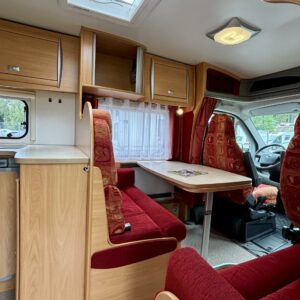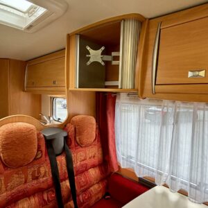 Trumatic- ilmapuhalluslämmitys, Bicycle rack, Pitkittäinen parivuode, Ohjaamoilmastointi- manuaalinen, Sun shade, Hot water boiler, Asuintilan ilmastointi, ABS brakes, CD-soitin, Fridge, Cassette WC, Cassette blinds, Roof hatch, Central heating, Stove, Power steering, Freezer compartment, Sink, Shower, Turbo, Kesärenkaat