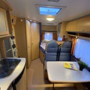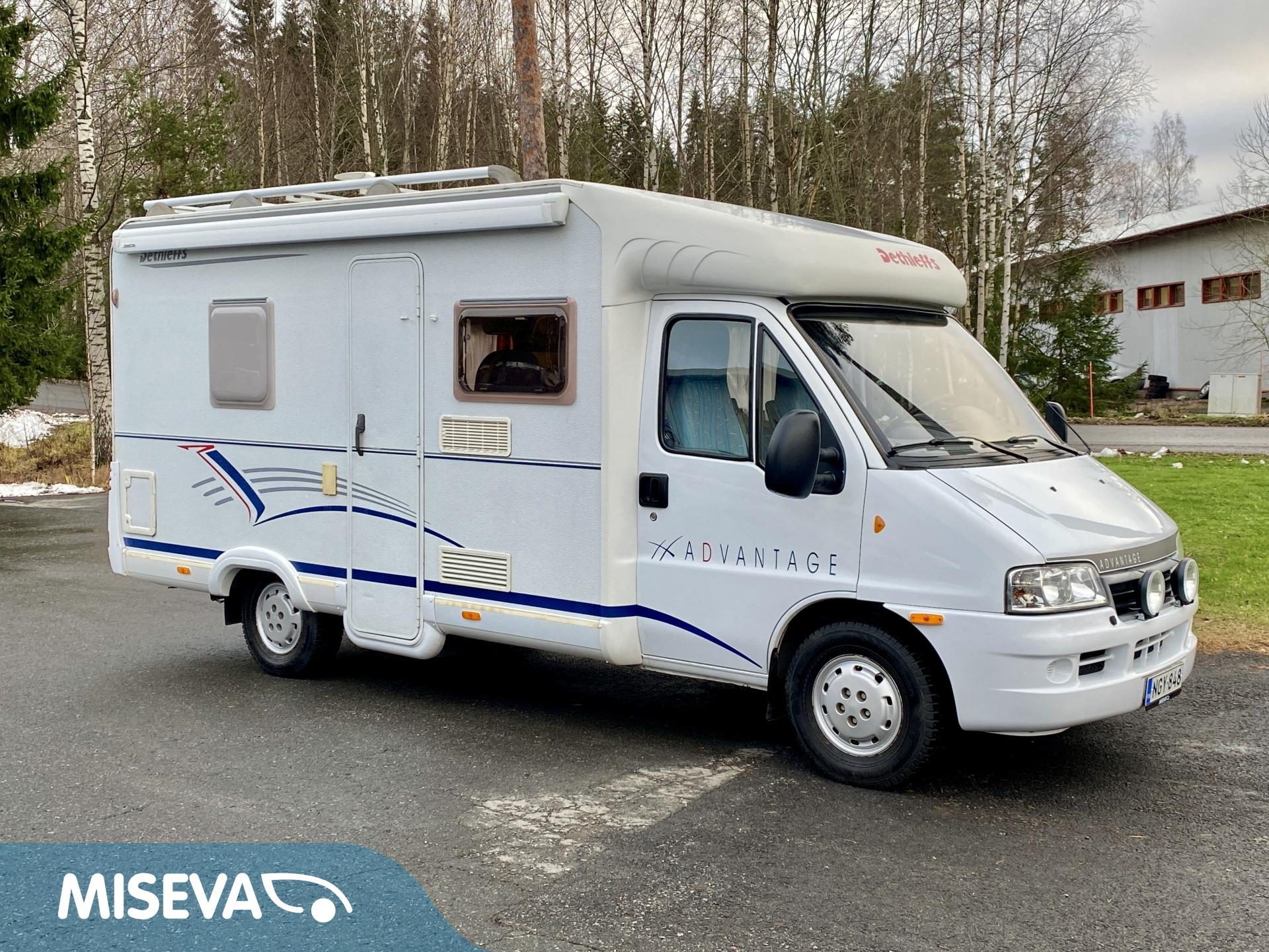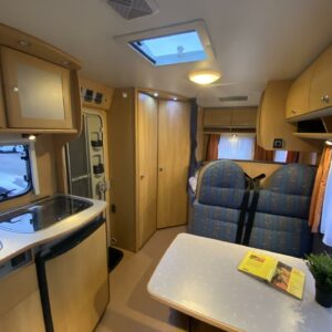 Cab air conditioning, Fridge, Two tyre sets, Cassette WC, Cassette blinds, Roof hatch, Central heating, Stove, Hot water boiler, Sun shade, Power steering, Double bed, Sink, Pysäköintikamera, Bicycle rack, Shower, Electric windows, Power side mirrors, Trumatic, Kesärenkaat, Talvirenkaat(nasta)