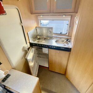 Alde, Insulated grey water tank, Fridge, Cassette WC, Cassette blinds, Roof hatch, Central heating, Floor heating, Stove, Engine heater, Hot water boiler, Sun shade, Fluid circulation heating, Power steering, Freezer compartment, Sink, Bicycle rack, Radio, Shower, Electric heating cartridge, Rear kitchen, Turbo, Lattialämmitys (sähkö), harmaavesisäiliön lämmitys