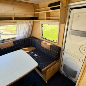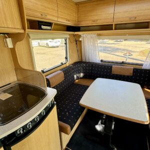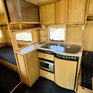 Alde, Microwave oven, Fluid circulation heating, Floor heating, Freezer compartment, Sink, Support legs, Electric heating cartridge, Shower, Roof hatch, Fridge, Cassette WC, Cassette blinds, TV-antenni tai lautasantenni, Stove, Radio, Separate beds, Hot water boiler