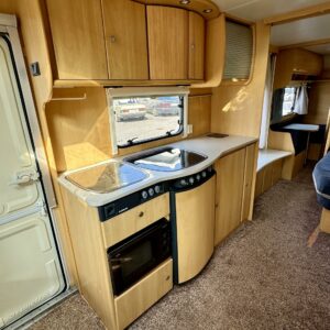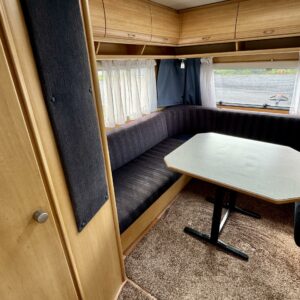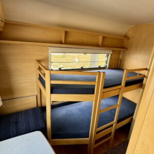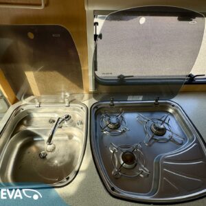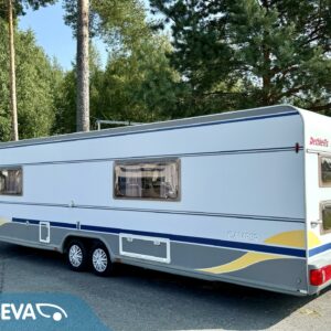 Alde, Fridge, Cassette WC, Roof hatch, Bunk bed, Floor heating, Stove, Microwave oven, Fluid circulation heating, Double bed, Sink, Support legs, Talvirenkaat(kitka), Lattialämmitys (sähkö)