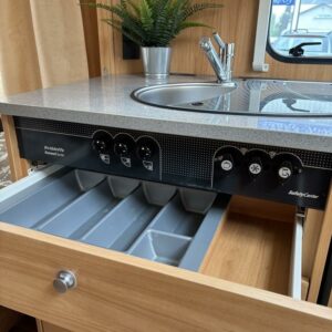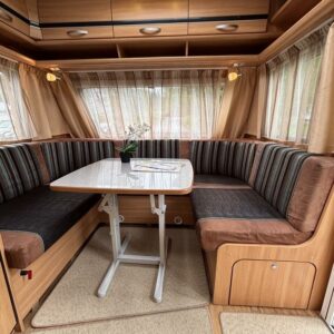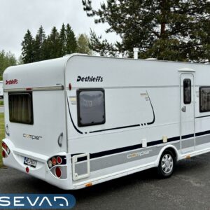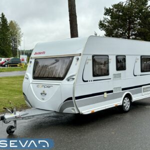 Alde, Shower, Fridge, Stove, Freezer compartment, Support legs, Cassette WC, liesituuletin, Cassette blinds, Roof hatch, Electric heating cartridge, sähkön ulosotto, kwh-mittari, kaasun ulosotto, Passenger area carpets, Fluid circulation heating, Hot water boiler, Sink, Double bed, Lattialämmitys (nestekierto), Kesärenkaat