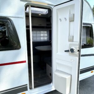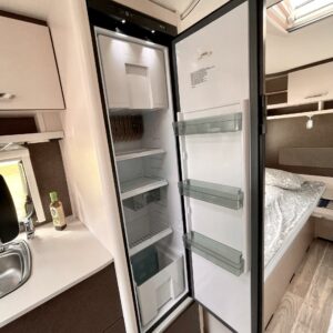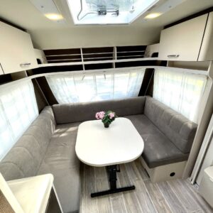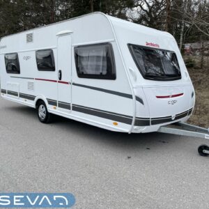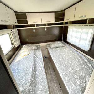 Separate beds, Fridge, Cassette WC, Cassette blinds, Roof hatch, Stove, Hot water boiler, Freezer compartment, Double bed, Shower, Trumatic, Support legs, Sink, Electric heating cartridge, Asuinosan hyttysovi/verho, televisio, kwh-mittari, Microwave oven, TV-antenni tai lautasantenni