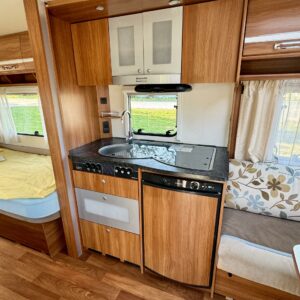 Alde, Separate beds, Fridge, Cassette WC, Cassette blinds, Roof hatch, Floor heating, Stove, Hot water boiler, Fluid circulation heating, Freezer compartment, Sink, Electric heating cartridge, Support legs, Ilmastointi (asuintila), Lattialämmitys (sähkö)