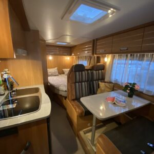 ABS brakes, Airbag, Trip computer, Cab air conditioning, Fridge, Two tyre sets, Cassette WC, Cassette blinds, Roof hatch, Keskuslukitus: Kaukosäätöinen, Central heating, Passenger area carpets, Stove, Engine heater, Hot water boiler, Sun shade, Fluid circulation heating, Power steering, Freezer compartment, Double bed, Sink, Bicycle rack, Radio, Shower, Electric windows, Electric heating cartridge, Power side mirrors, Turbo, Vakionopeudensäädin, Alde, Lattialämmitys (sähkö), Vakionopeuden säädin, Talvirenkaat(nasta), Kesärenkaat, Alde lämmönvaihdin