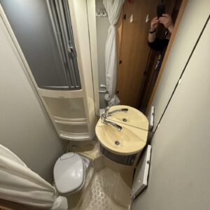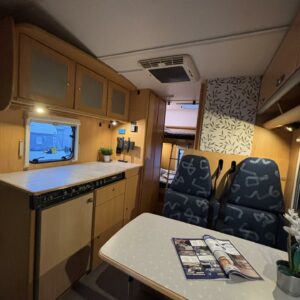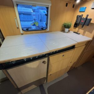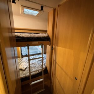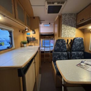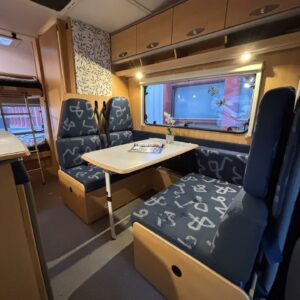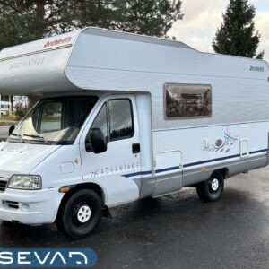 Fluid circulation heating, Power steering, Alde, Fridge, Two tyre sets, Cassette WC, Cassette blinds, Roof hatch, Bunk bed, Central heating, Freezer compartment, Double bed, Sink, Electric heating cartridge, Sun shade, Stove, Bicycle rack, Radio, Shower, Solar panel, Hot water boiler, Towing hook, Lattialämmitys (sähkö), Ilmastointi (asuintila), Engine heater, Kesärenkaat, Talvirenkaat(nasta), Invertteri, pullonvaihtaja