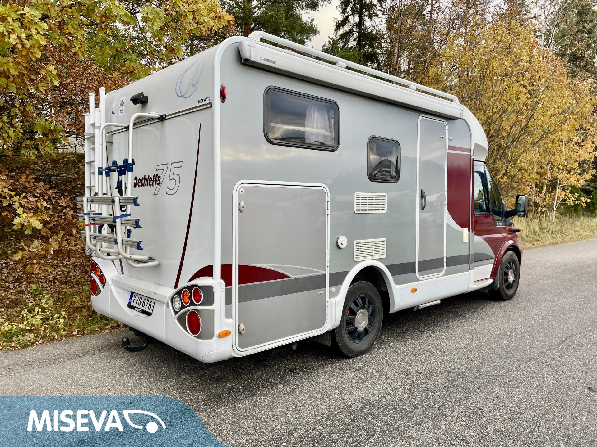ABS brakes, Fridge, Two tyre sets, Cassette WC, Cassette blinds, Roof railing/ladder, Roof hatch, Stove, Passenger area carpets, Hot water boiler, Sun shade, Power steering, Freezer compartment, Double bed, Sink, Fuel-operated additional heater, Pysäköintikamera, Bicycle rack, Radio, Shower, Electric windows, Electric heating cartridge, Power side mirrors, Electric steps, Trumatic, Turbo, Towing hook, Lattialämmitys (sähkö), Webasto/Eber, Vakionopeuden säädin, ohjaamon kasettiverhot, Ilmastointi (ohjaamo), Insulated grey water tank, Special wheels, Ikkunapeite