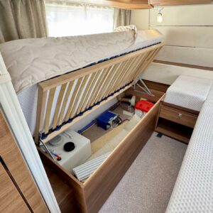 Trumatic, Separate beds, Fridge, Cassette WC, Cassette blinds, Stove, Hot water boiler, Sun shade, Freezer compartment, Double bed, Electric heating cartridge, Support legs