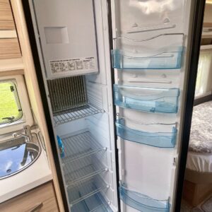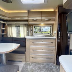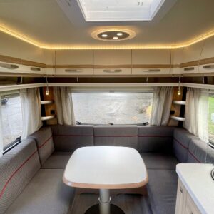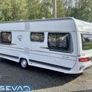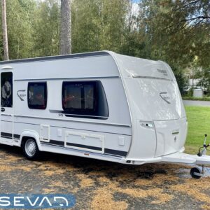 Separate beds, Fridge, Cassette WC, Cassette blinds, Roof hatch, Central heating, Floor heating, Passenger area carpets, Stove, Hot water boiler, Freezer compartment, Sink, Electric heating cartridge, Trumatic, Support legs, kwh-mittari, liesituuletin
