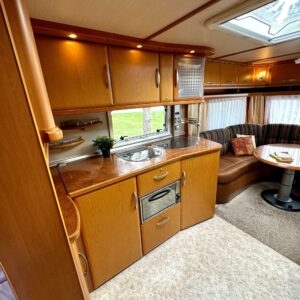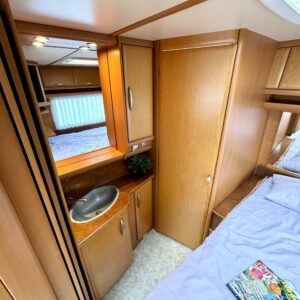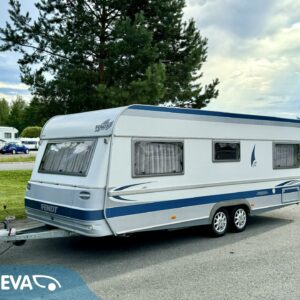 Double bed, Fridge, Cassette WC, Roof hatch, Hot water boiler, Sun shade, Freezer compartment, Sink, Shower, Trumatic, Floor heating