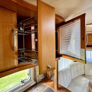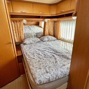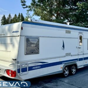 Alde, Electric heating cartridge, Cassette blinds, Shower, Roof hatch, Fridge, Gas oven, Two tyre sets, Cassette WC, Stove, Sun shade, Radio, liesituuletin, Fluid circulation heating, Double bed, Freezer compartment
